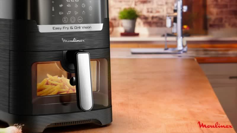 Découvrez un appareil 2-en-1 pour cuire et faire griller vos ingrédients avec peu ou pas d'huile, sans aucun compromis sur les saveurs ! Easy Fry & Grill Vision comprend une grille en fonte d'aluminium pour des légumes ou des viandes tendres et juteux, saisis à la perfection, Sa fenêtre transparente amovible permet de surveiller les ingrédients pendant la cuisson sans ouvrir le panier pour une tranquillité d'esprit totale. La réussite de vos cuissons n'a jamais été aussi simple grâce au 8 programmes automatiques, un panneau de commande numérique intuitif et une fonction de minuteur pratique.