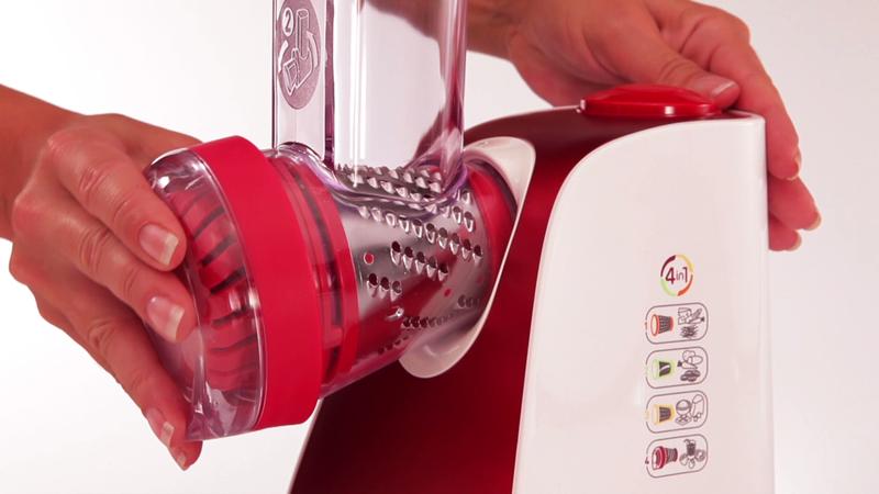 Les avantages du Fresh express nectar 4 en 1, Découpe légumes, 4 cônes dont 1 spécial nectar, Rouge et blanc