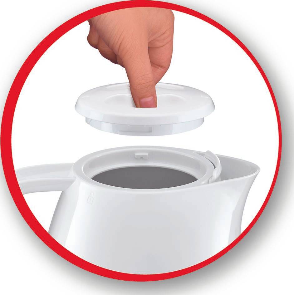 Facile d'utilisation, cette bouilloire trouvera facilement sa place dans votre cuisine Capacité de 1.5 L : savourez un long moment de convivialité en famille ou avec vos amis Ouverture du couvercle totalement amovible pour un remplissage et un nettoyage faciles Résistance cachée pour une ébullition rapide et un entretien facilité de l'intérieur de la bouilloire Filtre anti-calcaire amovible pour garder propre votre bouilloire et votre eau. Un filtre propre garantit une eau pure dans votre tasse pour un thé délicieux Bouton Marche/Arrêt avec arrêt automatique à ébullition Base pivotante de 360° pour une parfaite stabilité de la bouilloire sans fil Puissance de 2400W pour une ébullition rapide