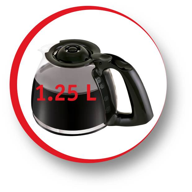 Avec son design tendance et sa finition noire mate, cette cafetière filtre programmable trouvera parfaitement sa place dans votre cuisine. Simple et efficace, elle offre une multitude de fonctions pratiques. Elle est programmable 24 heures à l'avance. Sa capacité de 1,25 l de café soit 10 à 15 tasses vous permettra de savourer un long moment de convivialité. Pratique avec son niveau d'eau visible à l'avant pour doser l'eau son porte-filtre pivotant et amovible elle est facile à remplir et à nettoyer. Son système anti-goutte pour servir le café même lorsque la cafetière est en fonctionnement et son bouton marche/arrêt qui permet d'éteindre la machine à café à tout moment seront une aide au quotidien. Économique et sécurisée elle s'arrête automatiquement 30 minutes après la fin du cycle café. Pendant ce temps, votre café est maintenu au chaud à la bonne température.