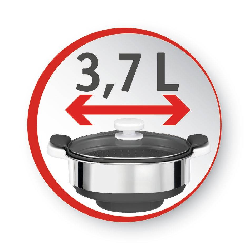 Cet accessoire Companion cuit à la vapeur jusqu'à 4 aliments de consistance différente, simultanément et sur plusieurs niveaux. Composition de l'accessoire : un bol vapeur en acier inoxydable d'une capacité de 3,7 l avec poignées, un plateau vapeur intermédiaire perforé, un couvercle en verre transparent vous permettant une visibilité sur votre préparation, un bac récupérateur de jus de cuisson pour réaliser des sauces qui accompagneront vos plats. Conseil d'utilisation : la vapeur, provenant des 0,7L d'eau chauffés dans le bol, se propage dans les différents niveaux du cuiseur vapeur. Il est donc préférable de placer les aliments nécessitant davantage de cuisson dans le premier bol vapeur et de placer ceux nécessitant une cuisson plus rapide, dans le plateau supérieur. Grâce au panier vapeur Companion, réalisez des repas complets pour la famille avec viande ou poisson, accompagnement et légumes en même temps ! Il est même possible de cuisiner du riz, des fruits et des crèmes dessert. Conçu pour tous les robots cuiseurs Companion