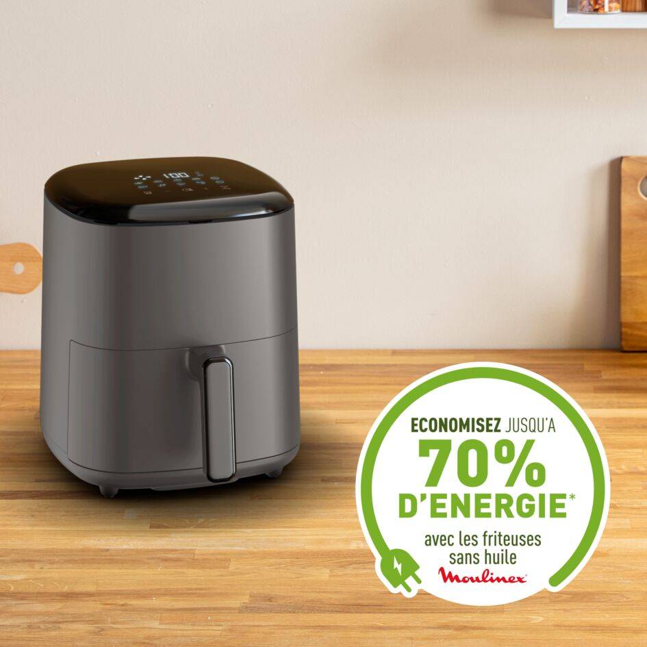 Une friteuse air fryer indispensable pour des plats sains et savoureux prêts en quelques minutes avec peu ou pas d'huile Une capacité généreuse de 5 L qui permet de servir jusqu'à 6 personnes. Économisez jusqu'à 70 % d'énergie avec des résultats 46 % plus rapides*, pour passer moins de temps en cuisine et plus de temps à faire ce que vous aimez Un appareil facile à utiliser équipé d'un panneau de commande digital intuitif pour une cuisson sans effort 10 programmes de cuisson sans surveillance : Frites, Poulet, Steak, Poisson, Desserts, Pizza, Nuggets, Légumes, Crevettes, Bacon Panier de cuisson antiadhésif et compatible lave-vaisselle pour un nettoyage sans effort Engagement de réparabilité 15 ans pour contribuer à la protection de l'environnement et à la réduction des déchets Scannez le QR code sur votre smartphone ou votre tablette pour accéder au livre de recettes Easy Fry pour des recettes faciles qui plairont au plus grand nombre