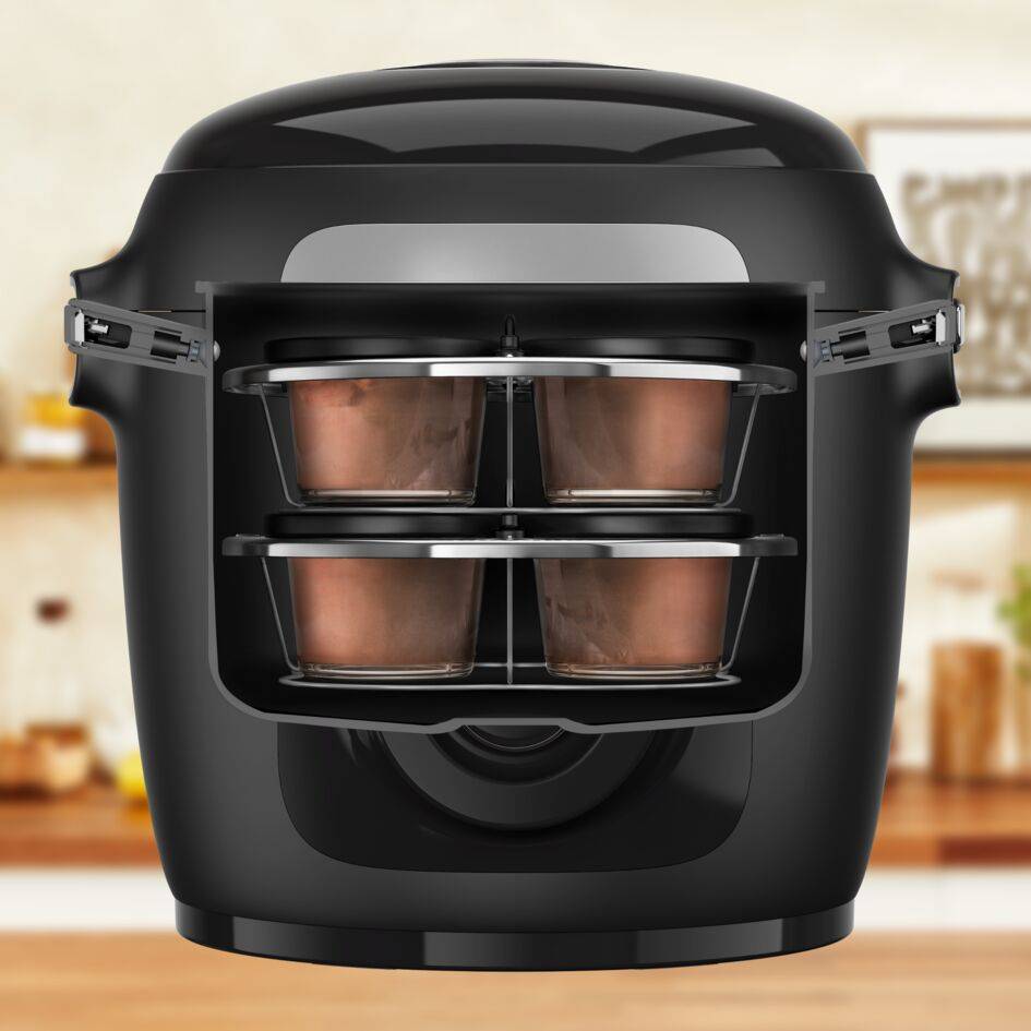 Découvrez de nouvelles possibilités de recettes, y compris des entrées, des yaourts et des desserts, grâce à ce kit de verrines superposables dans votre multicuiseur ! Composé de 8 pots en verre individuels et d'un support breveté permettant de cuire sur deux niveaux, ce kit rend la préparation des repas plus pratique et plus facile que jamais, tout comme le nettoyage. Compatible avec tous les modèles Cookeo au format 6 L.