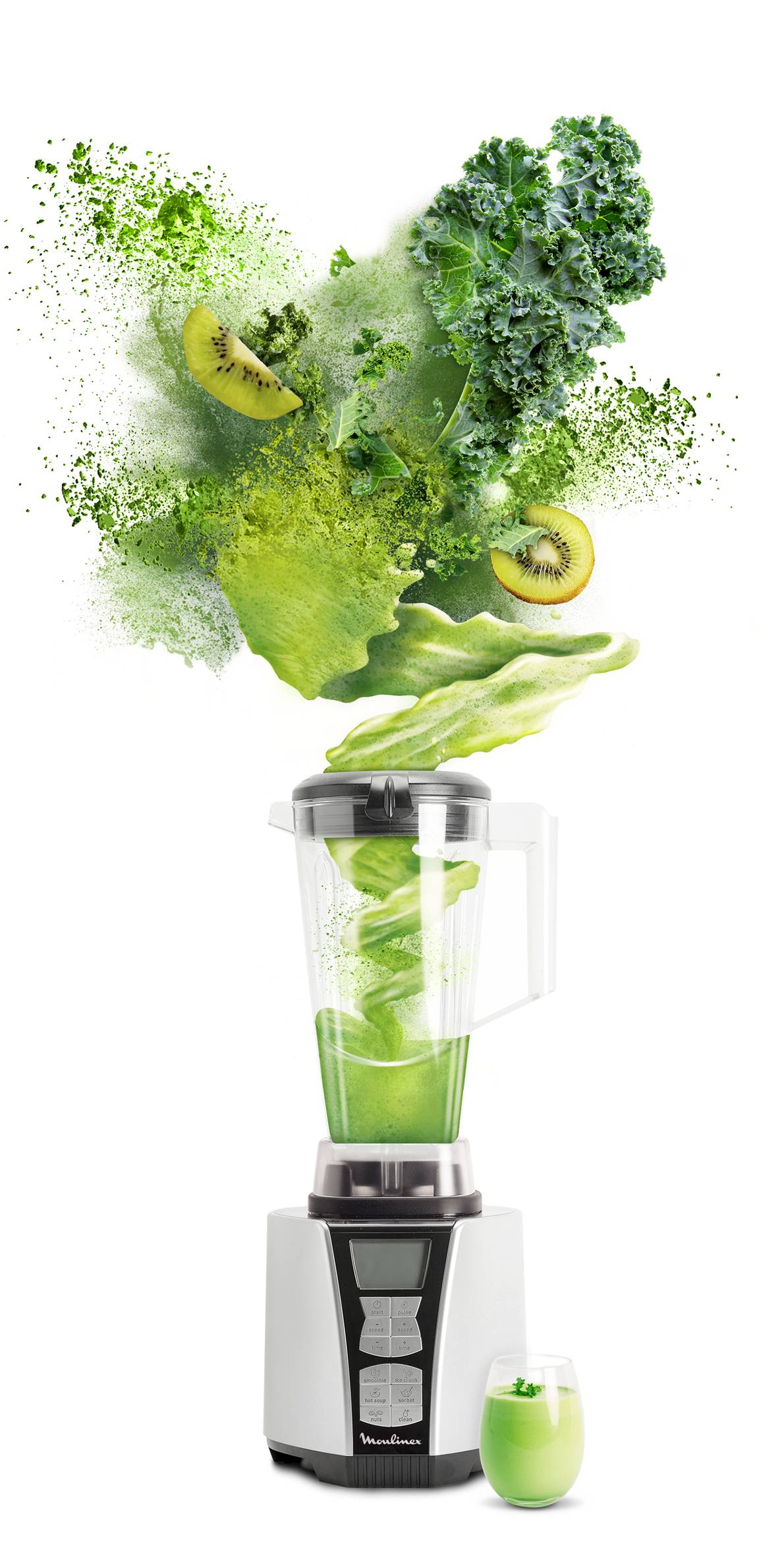 Le nouveau ultra high speed blender Ultrablend+ de Moulinex vous emmène au-delà du simple mixage. Grâce à un moteur ultra puissant de 1500 W et à sa technologie de lames Tripl’Ax Pro ultra performantes, il propulse les lames à près de 460 km/h. En pulvérisant vos fruits et légumes, il libère toute la force enfouie dans les cellules de vos ingrédients : fibres, vitamines, nutriments. Profitez alors de tous ces bénéfices nutritionnels pour révéler vos super-pouvoirs ! N’ayez plus peur des longues journées de travail : votre smoothie détox vous accompagnera partout et saura vous apporter les vitamines nécessaires pour rester en forme tout au long de la journée ! Céléris, chou kale, épinards, ananas, pommes vertes : aucun ingrédient ne résiste à Ultrablend+, même les plus fibreux ! Boostez vos performances physiques et repoussez vos limites avec des boissons énergétiques faites maison : graines de chia, flocons d’avoine, cranberries, bananes… Faites le plein de protéines, en toute gourmandise ! Aussi, transformez vos grains de riz, de quinoa ou de chataigne en farine et réalisez une grande variété de recettes sans gluten, pour le plus grand plaisir de toute votre famille ! Ses 6 programmes automatiques et son mode manuel vous accompagneront dans toutes vos préparations, chaudes ou froides : smoothies, glace pilée, soupes chaudes (grâce à la friction des lames), sorbets, fruits à coque, ainsi qu'un programme de nettoyage automatique ! Découvrez des textures lisses et ultra aérées incomparables, ainsi que des saveurs inédites enfouies au cœur de vos fruits et légumes ! Les ingrédients sont mixés si finement qu’ils sont beaucoup plus faciles à assimiler par l’organisme. Vous vous sentez plus jeune, plein de vitalité et prêt à révéler vos super-pouvoirs ! Alors, pourquoi se priver ?