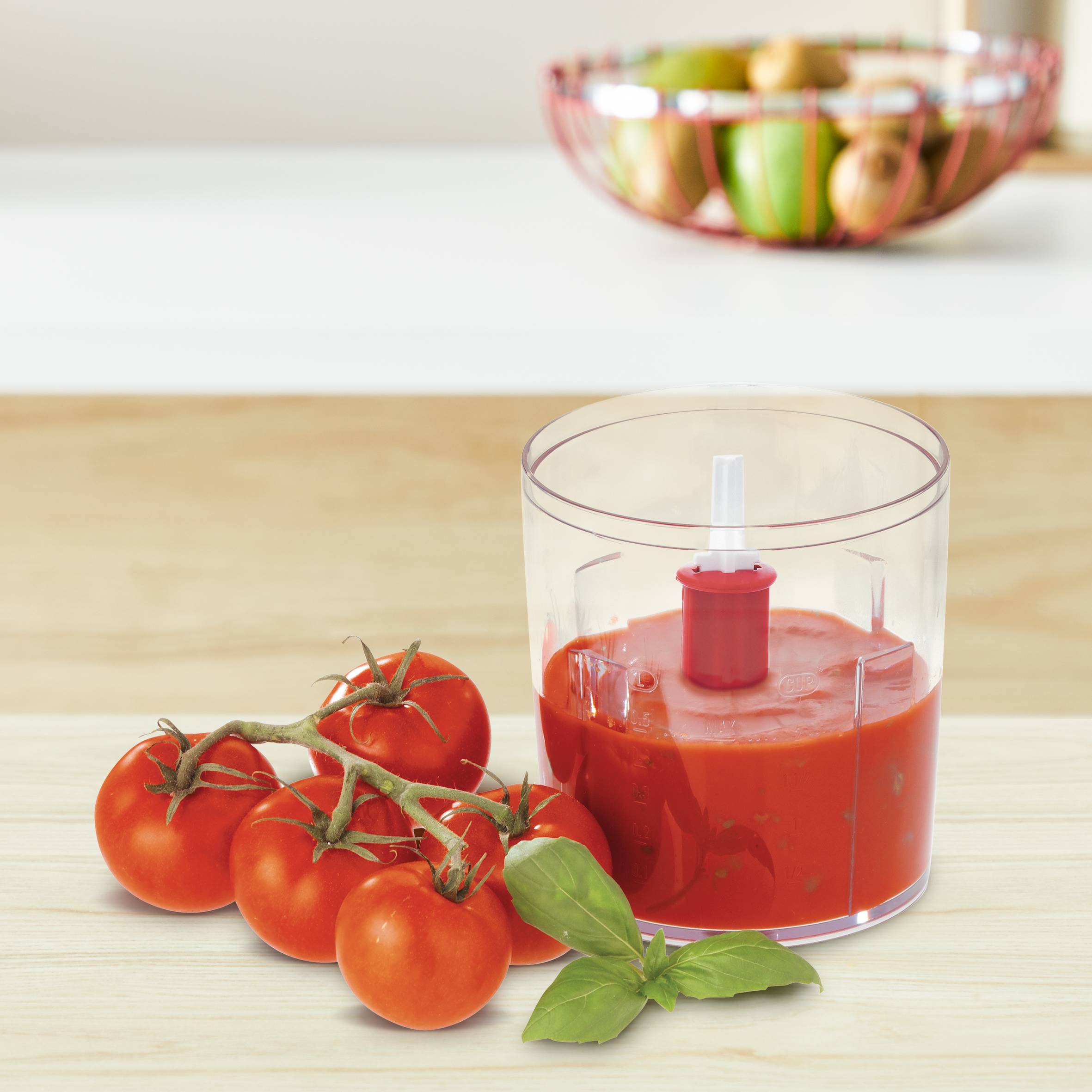 Un hachoir électrique polyvalent qui émince, hache et mixe tout, que ce soit un assaisonnement à l'ail et aux herbes ou une mayonnaise maison Accessoire shaker pour mélanger, émulsionner et fouetter, pour une polyvalence maximale Facile à utiliser, ce hachoir électrique intuitif offre une expérience utilisateur exceptionnelle Le contrôle à deux vitesses vous permet de passer du mode turbo au mode pulse pour obtenir une texture parfaite à tous les coups Les accessoires compatibles lave-vaisselle vous simplifient la vie au quotidien avec un nettoyage sans effort et une praticité optimale Le moteur de 500 W offre des performances fiables au quotidien pour vous permettre de réaliser une grande variété de recettes savoureuses Idéale en toutes circonstances, la capacité de 500 ml (volume utile) convient parfaitement pour des repas faciles les soirs de semaine ou pour les grandes occasions