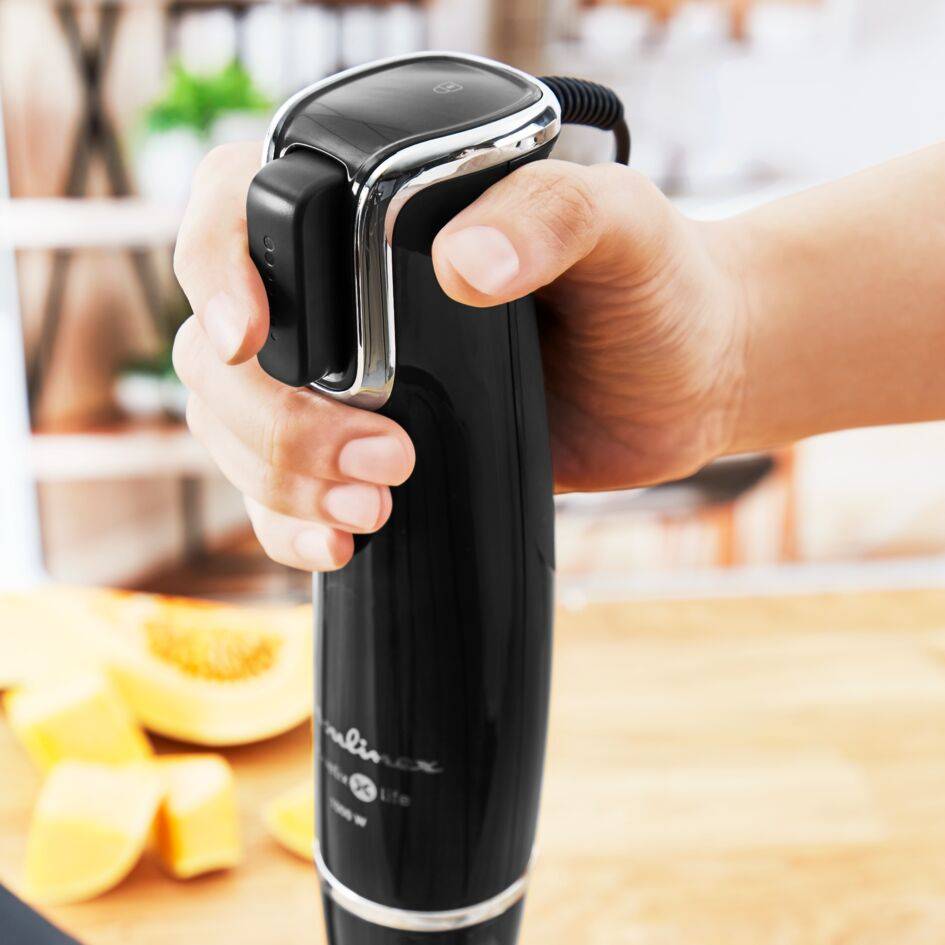 Le pied mixeur Infiny Force de Moulinex offre précision optimale et facilité d'utilisation. Grâce à sa puissance de 1000 W, il assure des performances exceptionnelles et des résultats d'une rapidité incomparable. Réalisez une grande variété de préparations faites maison telles que: soupes, purées, sauces, pesto, et plus encore. Les lames Powelix Life exclusives garantissent une durabilité exceptionnelle, avec des performances qui durent deux fois plus longtemps et des résultats 30 % plus rapides*. Sa poignée sous forme de gâchette permet un déclenchement progressif de la vitesse pour répondre à tous vos besoins de mixage et vous donner une précision ultime dans les textures. Découvrez le mixeur plongeant idéal Infiny Force de Moulinex pour préparer vos plats au quotidien. Il dispose d'un pied anti-éclaboussure pour éviter de salir votre cuisine, un verre doseur de 800 ml, ainsi que des accessoires polyvalents comprenant un hachoir de 500 ml, un fouet et un "ice crush" pour faire vous-même votre glace pilée.