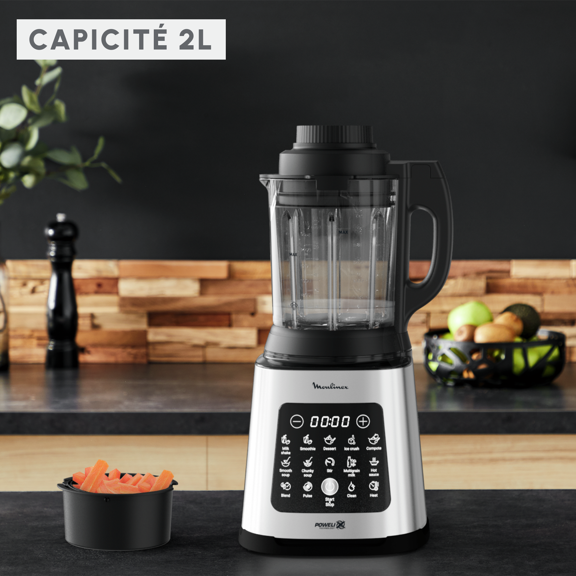 Avec le mixeur Perfectmix Cook, préparez une incroyable variété de plats du bout des doigts : des smoothies glacés à base de fruits frais aux soupes et ragoûts bien chauds et consistants. Ce blender chauffant polyvalent de Moulinex garantit un mixage puissant à haute vitesse et bien plus, pour réaliser des recettes chaudes, froides, solides et liquides, le tout en quelques clics grâce à ses 10 programmes automatiques chauds et froids. Une fois que les plats sont prêts, l'étape de nettoyage est d'une simplicité grâce aux lames amovibles et à une fonction extrême de nettoyage en profondeur unique, qui élimine 99,99 %* des bactéries, pour une hygiène irréprochable et une sérénité totale. Équipé de la technologie de lames Powelix hautes performances pour une efficacité incroyable et des résultats 30 % plus rapides**, ainsi que d'un panneau tactile intuitif, votre créativité en cuisine n'aura aucune limite.