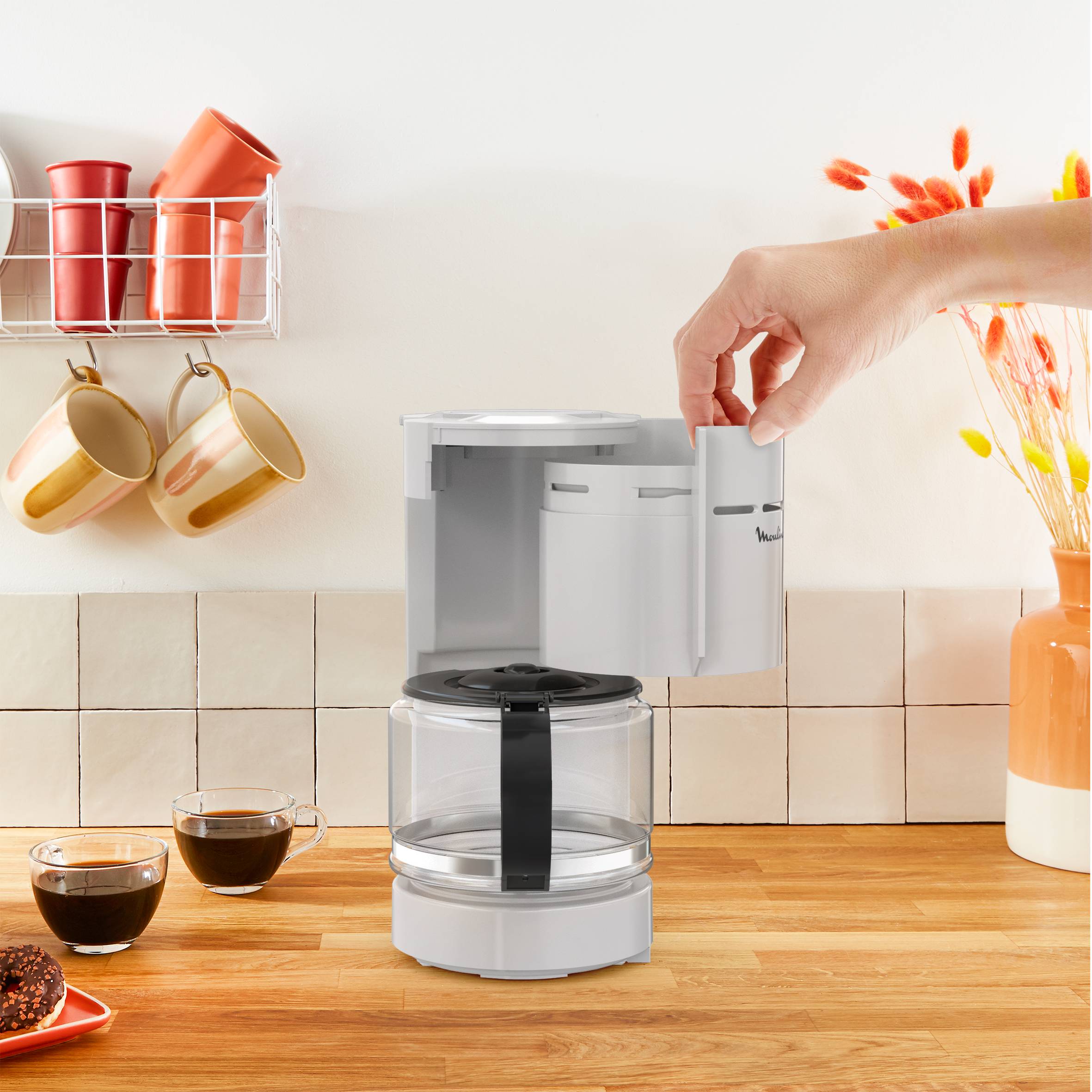 Cafetière filtre élégante de couleur grise, un coloris moderne qui se marie à la perfection avec tous les plans de travail Porte-filtre pivotant pour un remplissage et un nettoyage faciles Système antigoutte pour retirer la verseuse à tout moment du cycle de percolation, sans craindre les gouttes Grande verseuse de 1,1 litre pour préparer jusqu'à 12 tasses de délicieux café Arrêt automatique après un cycle de maintien au chaud pendant 30 minutes pour une praticité et une sérénité totales Bouton Marche/Arrêt pratique avec témoin lumineux bien visible