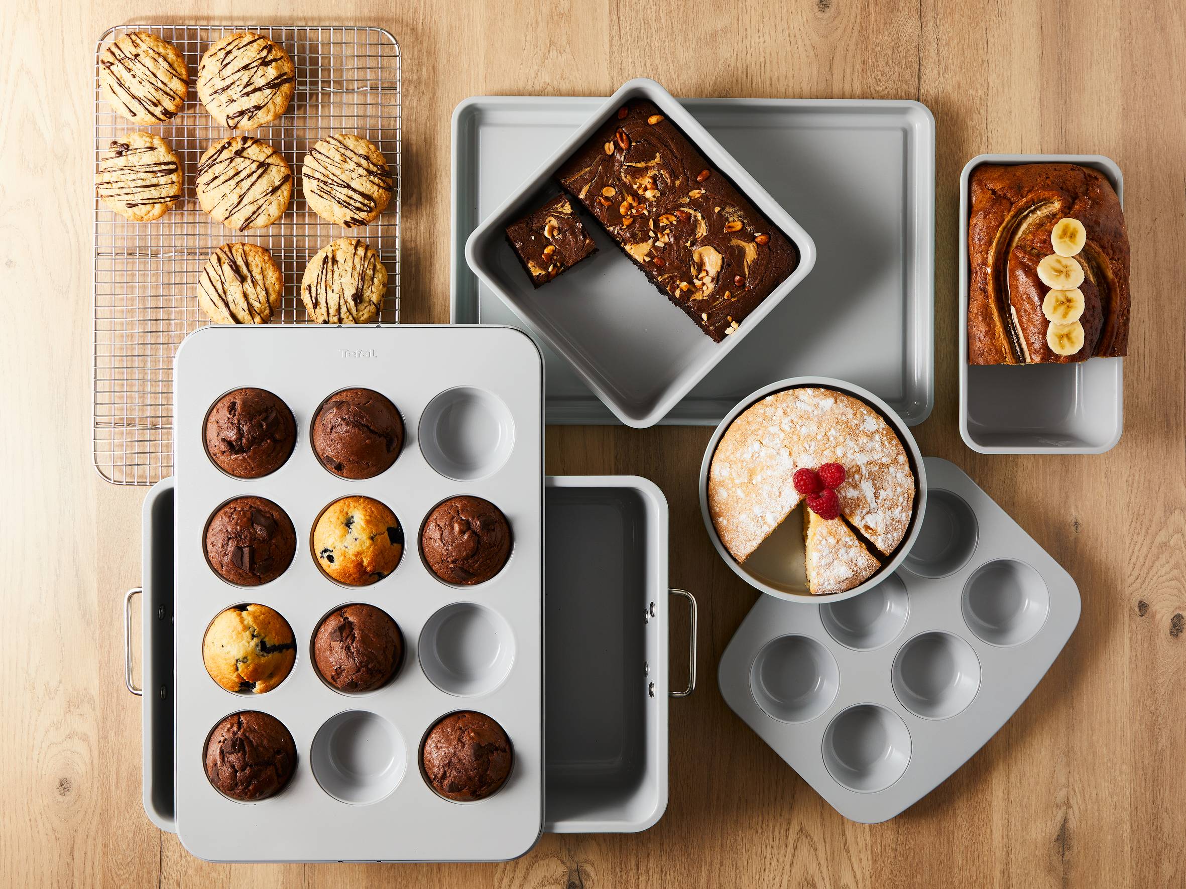 Le set de pâtisserie indispensable, parfaitement empilable, pour un rangement sans effort Revêtement en céramique enrichi en minéraux, anti-rayures et capable de supporter des températures allant jusqu'à 230 °C Démoulage facile et performances longue durée grâce à un revêtement intérieur en céramique Moules de haute qualité adaptés à toute la famille, sans PFOA, sans plomb et sans cadmium* Diffusion optimale de la chaleur pour de délicieuses préparations maison, parfaitement dorées Le revêtement en céramique brillant et lisse garantit un nettoyage sans effort