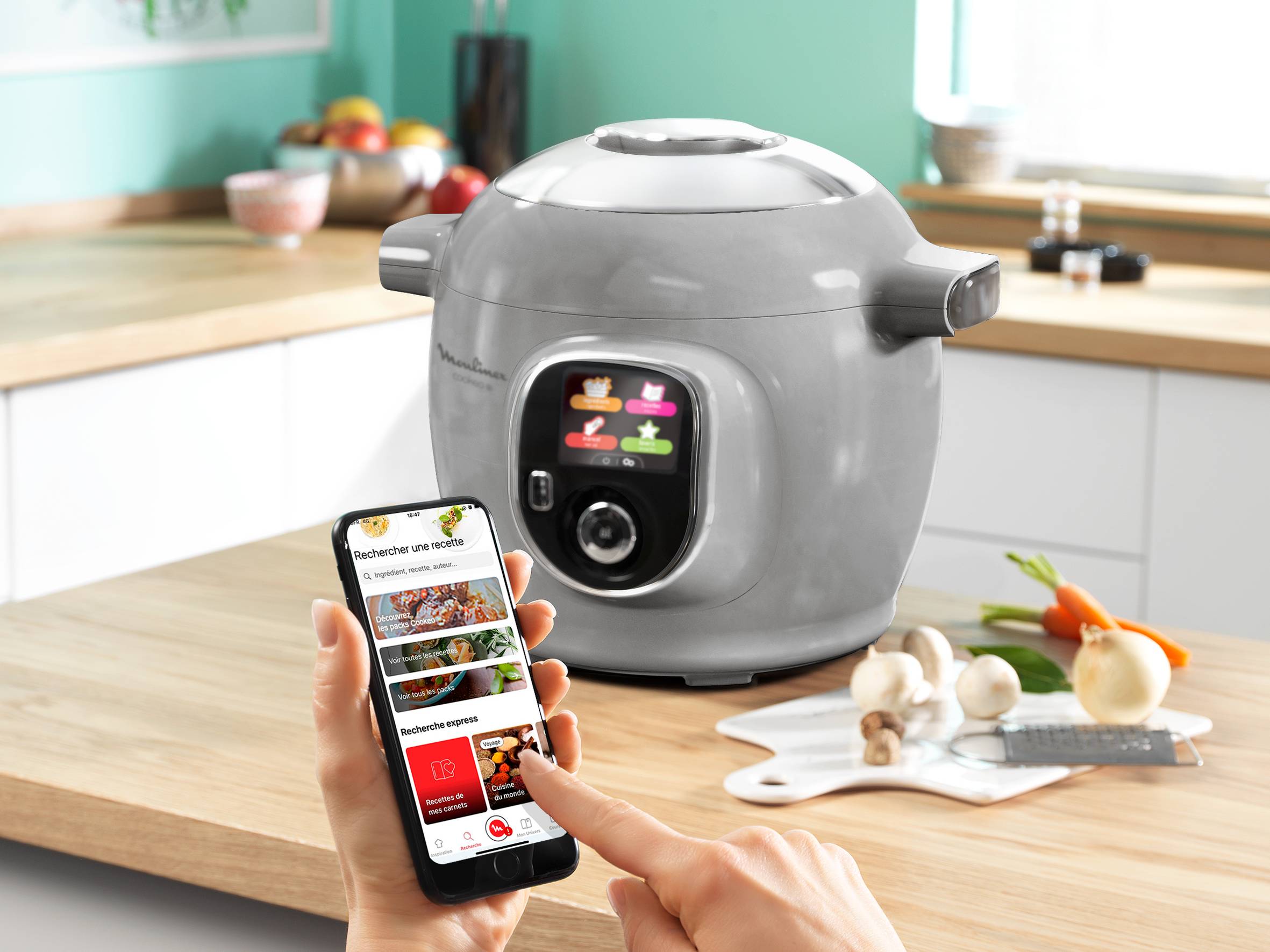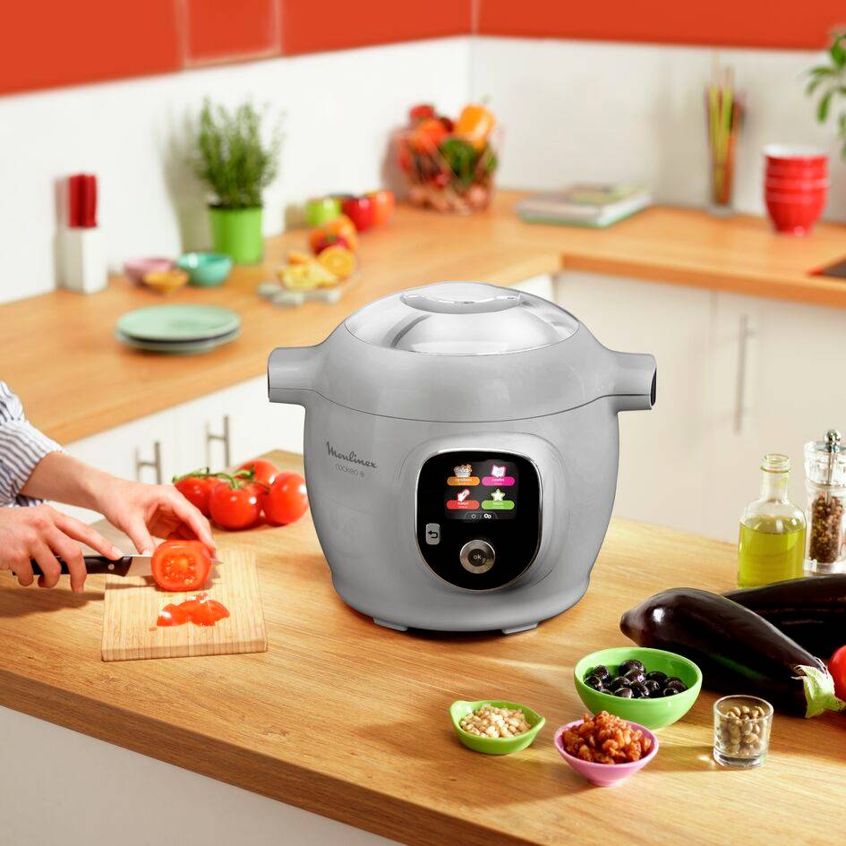 Découvrez Cookeo, le multicuiseur intelligent haute pression dont vous ne pourrez plus vous passer ! 80 recettes préprogrammées, pour cuisiner vite et bien vos plats du quotidien. Son écran intuitif vous guide pas à pas pour réussir parfaitement vos plats. Trouvez la recette parfaite directement dans votre Cookeo ou à l'aide de l'application MyMoulinex. Gagnez du temps avec le mode de cuisson sous pression, pour des repas prêts en un rien de temps et sans surveillance : Cookeo relâche la pression et maintient vos plats au chaud automatiquement. De plus, avec 6 modes de cuisson, profitez chaque jour d'une grande variété de plats faits maison !