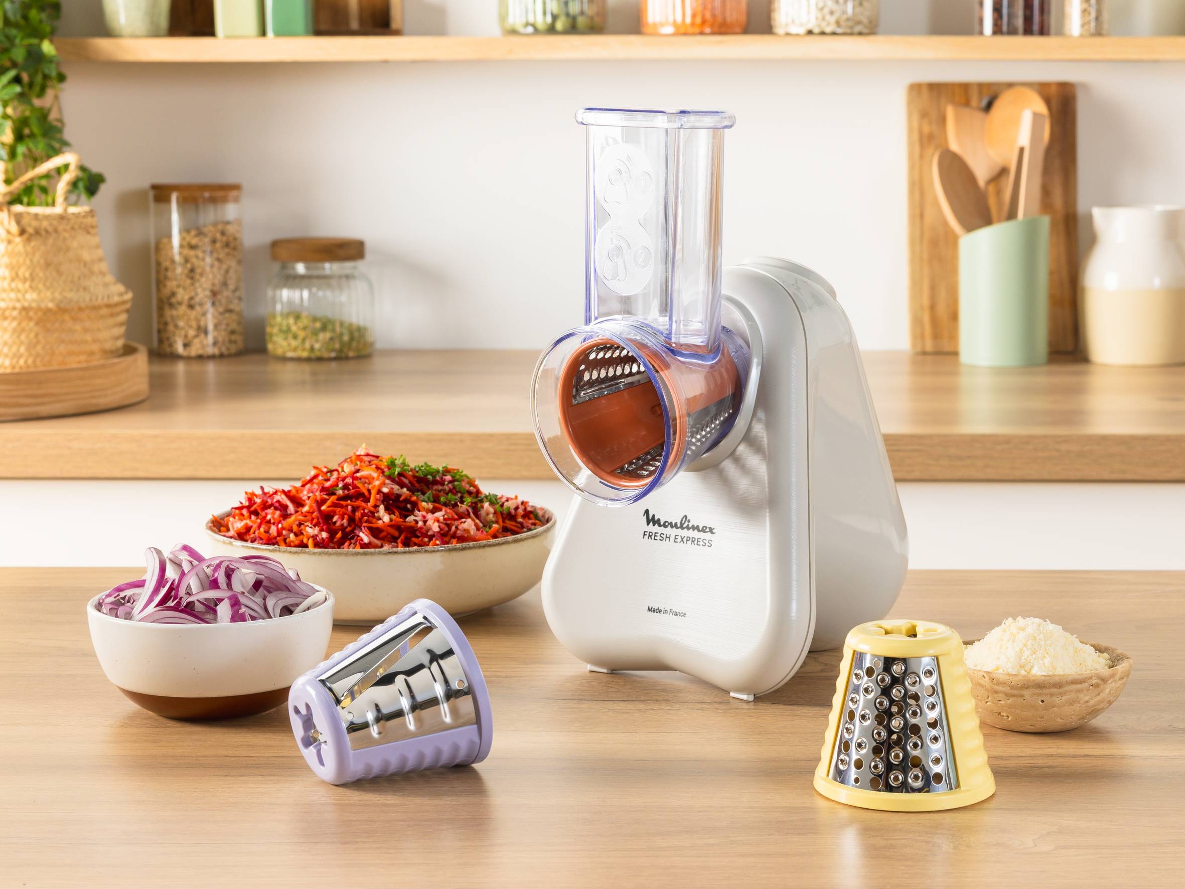 En tant qu'inventeur des découpe-légumes avec service direct, avec plus de 7,4 millions d'unités vendues, Moulinex s'engage dans l'innovation et la réinvention afin de rendre la cuisine accessible à tous. Associant fiabilité et efficacité, Fresh Express est fabriqué en France pour vous aider à réussir chaque jour toutes vos préparations maison.
