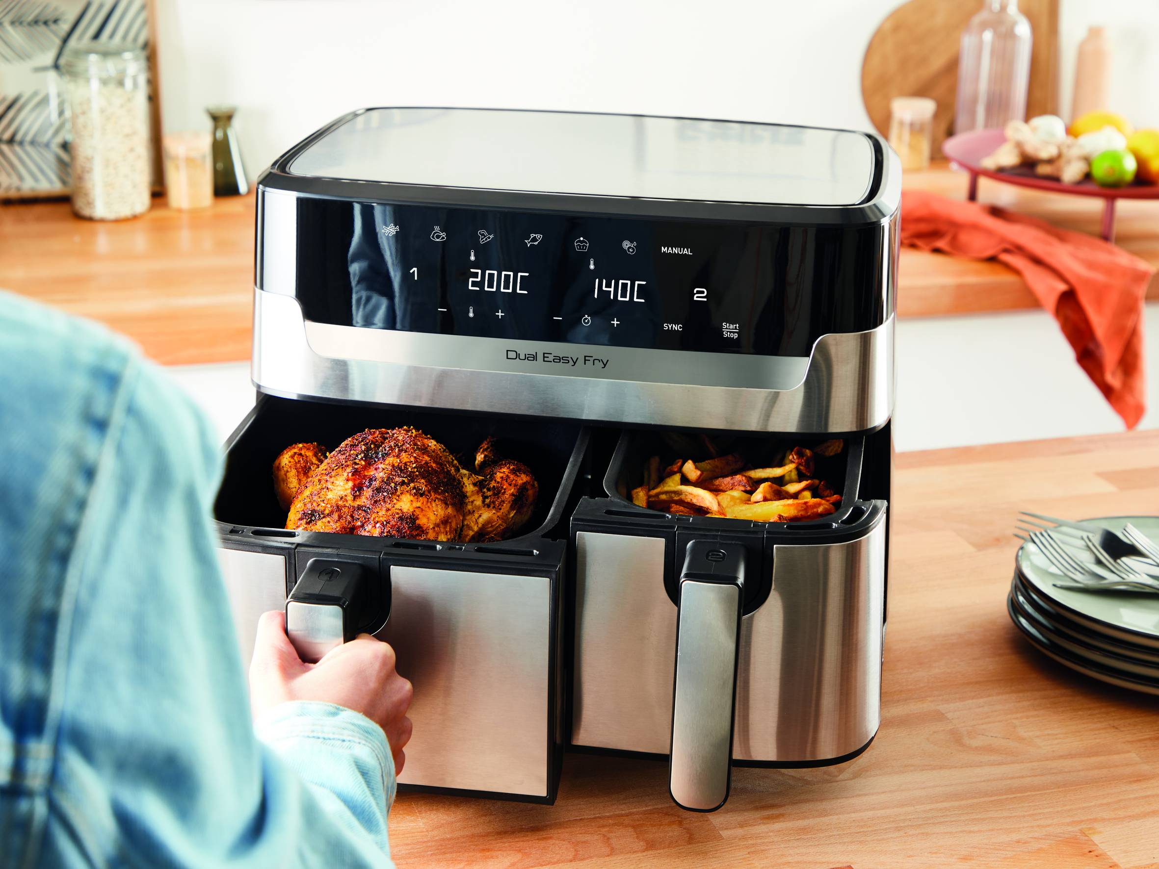 Les avantages du RECONDITIONNÉ Dual Easy Fry & Grill, 8.3L, Air fryer, Inox