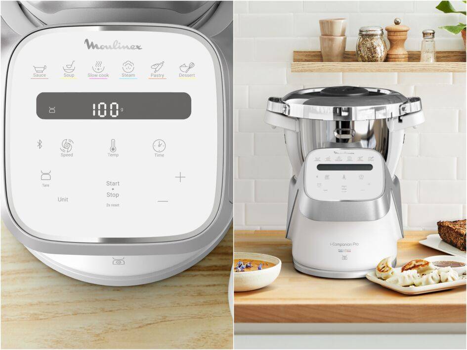 Robot cuiseur multifonction connecté qui fait tout, avec 17 modes de fonctionnement dont un mode manuel et 6 accessoires dont un double fouet pour réaliser encore plus de recettes Balance intégrée pour peser les ingrédients au gramme près directement dans le bol de votre i-Companion Pro pour plus de fluidité et de praticité Le robot cuiseur multifonction le plus silencieux*, idéal pour cuisiner sans perturber le calme de votre maison Connectivité Bluetooth pour relier votre i-Companion Pro à votre téléphone ou votre tablette et régler instantanément et simplement les paramètres de cuisson Un bol de grande capacité (4,5 L), idéal pour cuisiner de délicieux plats maison pour votre famille et vos amis jusqu'à 10 personnes Engagement de réparabilité 15 ans au juste prix grâce à notre réseau de 6200 réparateurs dans le monde Robot de cuisine Made in France : conçu, designé et fabriqué dans notre usine à Mayenne Application gratuite Moulinex pour découvrir une infinité de recettes, sauvegarder vos recettes préférées et trouver l'inspiration avec la fonction « Dans mon frigo » Design compatible lave-vaisselle et facile à ranger qui garantit un nettoyage et une organisation sans effort