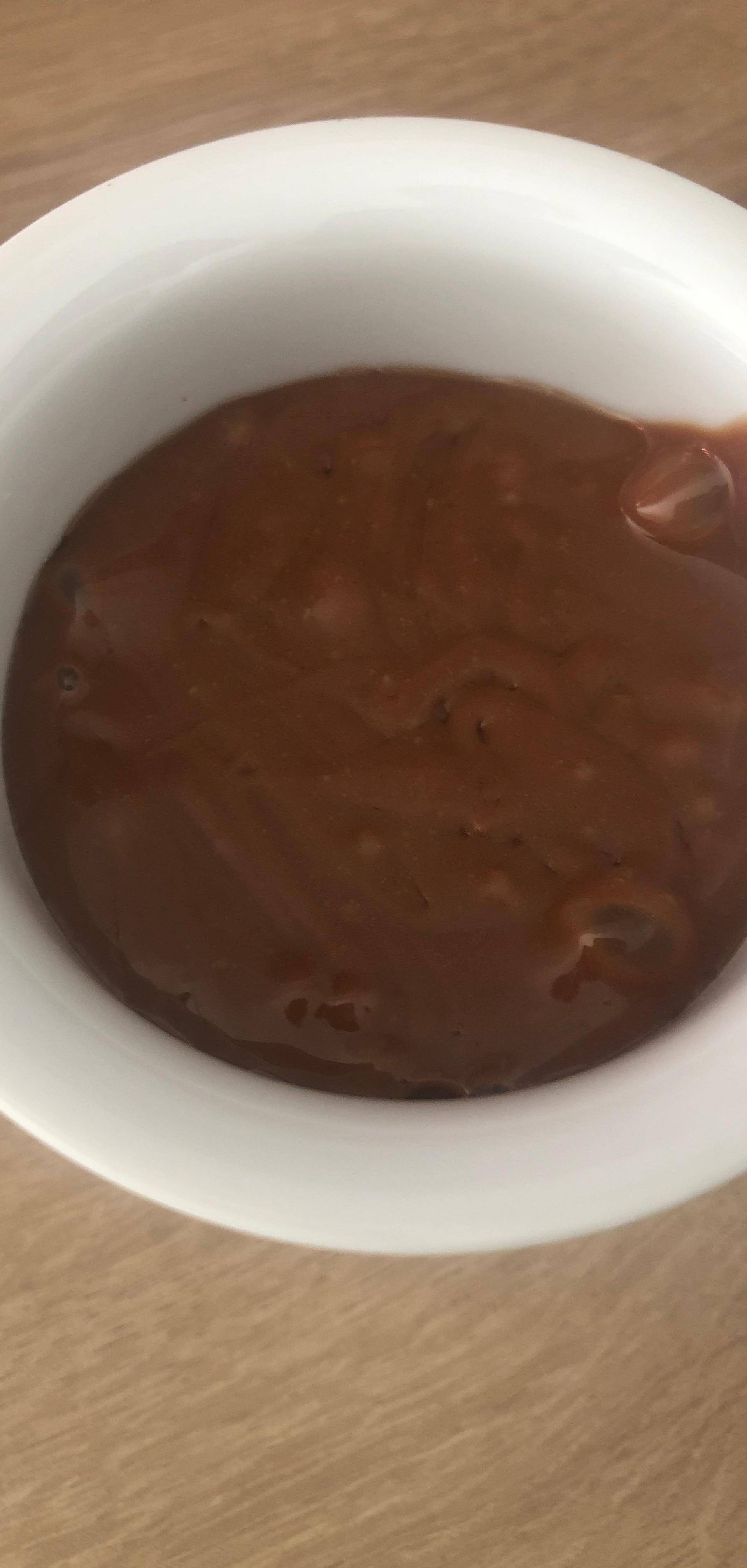 Verser le chocolat au lait dans le robot muni du couteau pétrir/concasser et le beurre coupé en morceaux. Mixer en vitesse 3 à 45 degrés pendant 10 minutes.