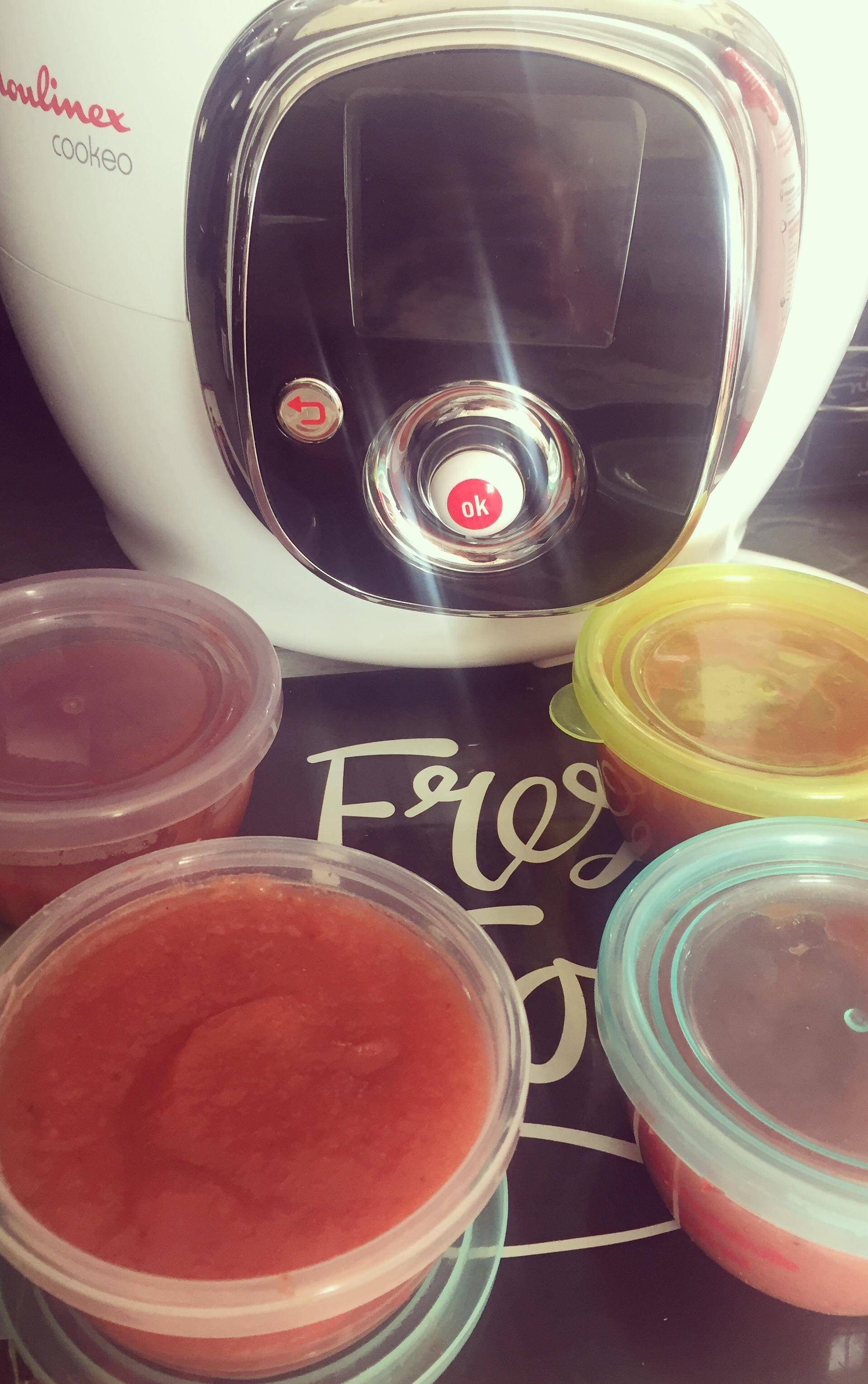 A la sonnerie, verser les fruits dans un saladier et mixer avant de mettre le tous dans des petits pots. RĂ©galez vous ! đđđ
