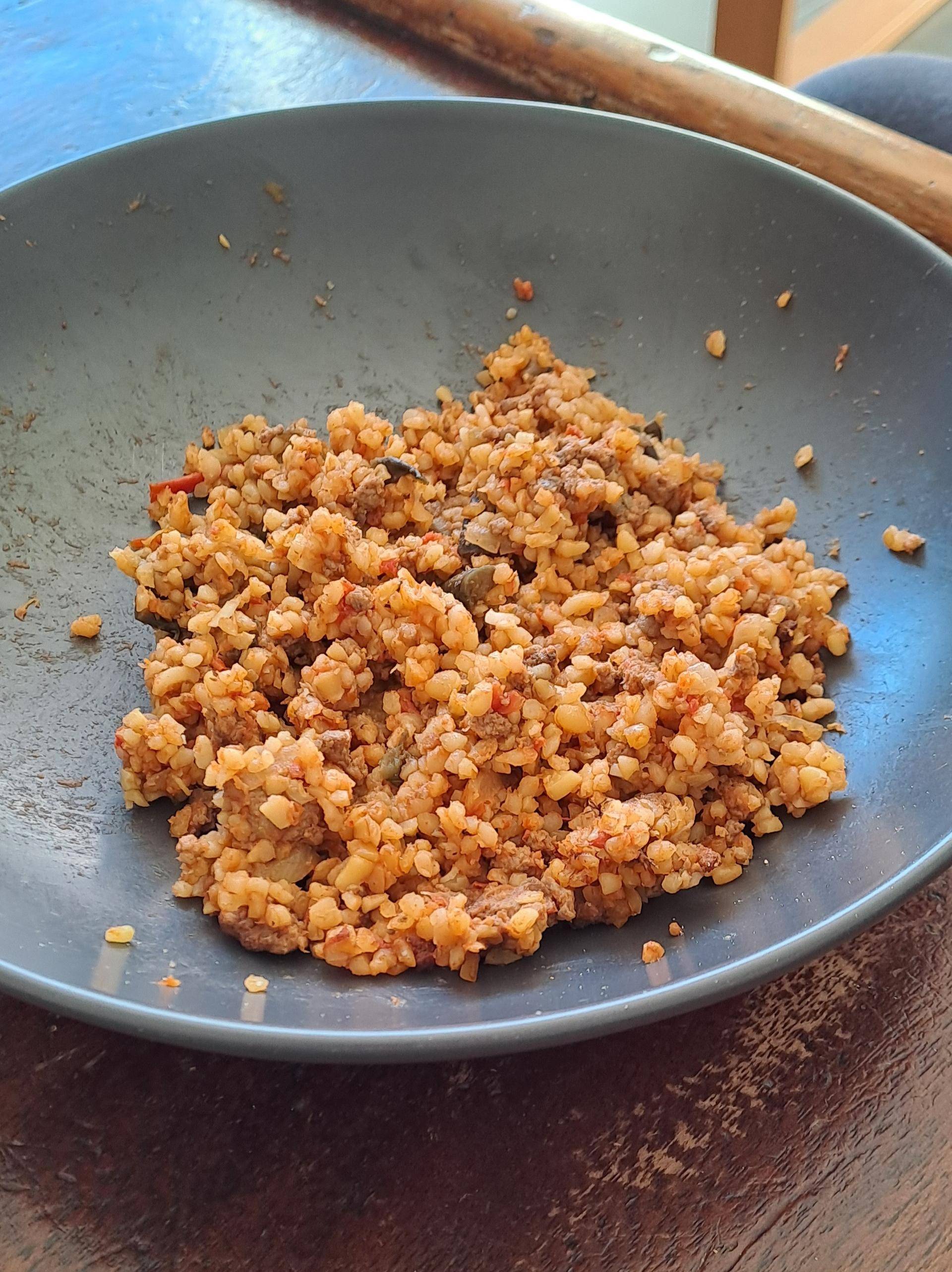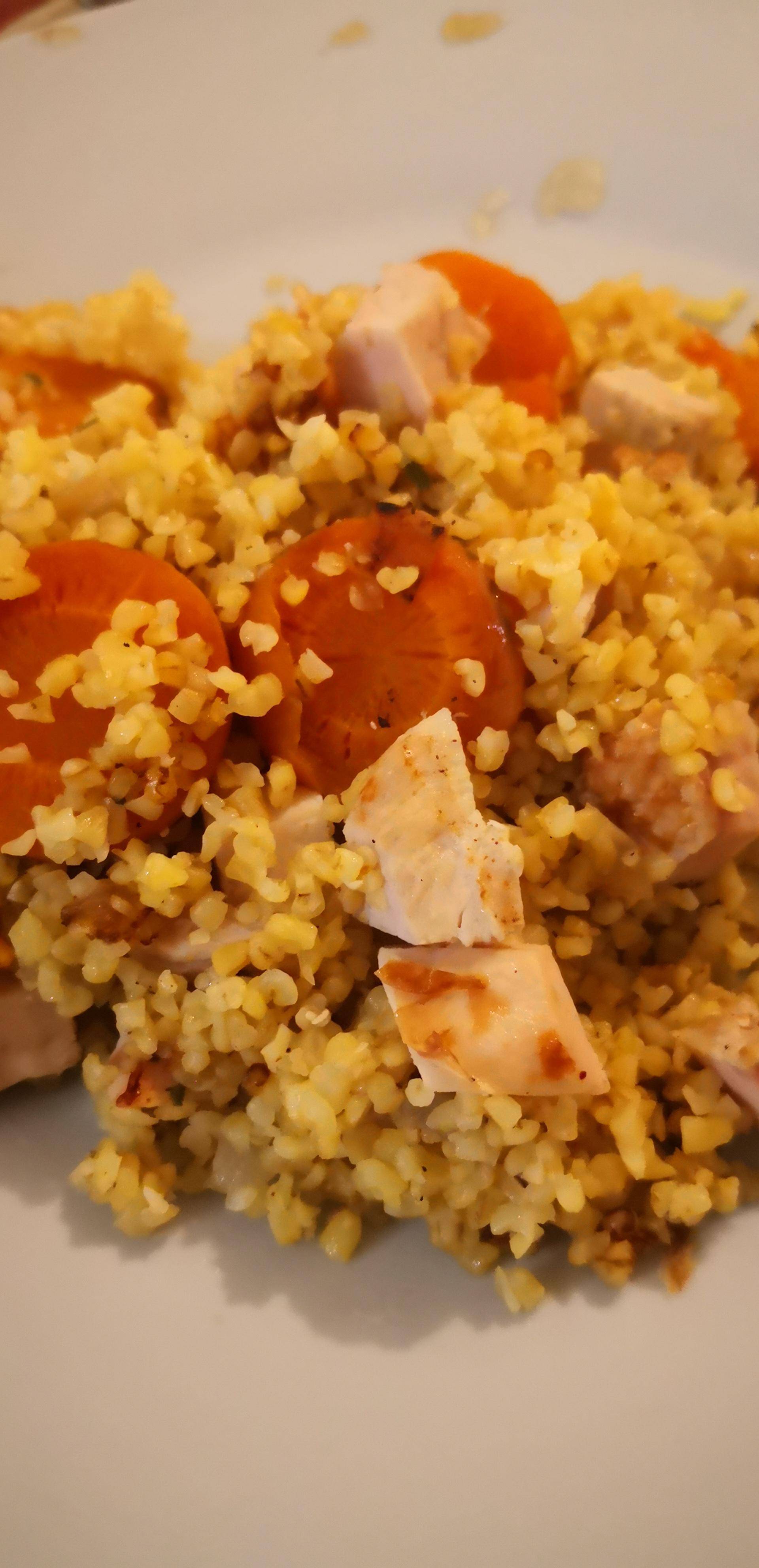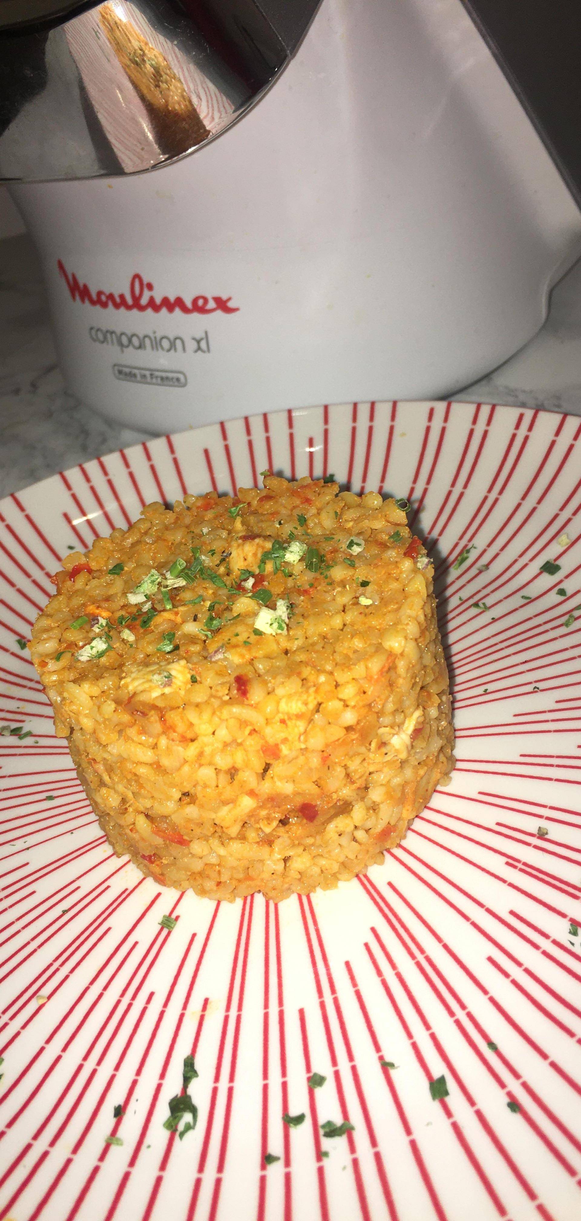 Ajouter le reste des ingrédients. Programme Slow cook P3 pendant 10 min sans le bouchon. A 9 min arrêter le programme mettre le bouchon et laisser reposer 5 min.