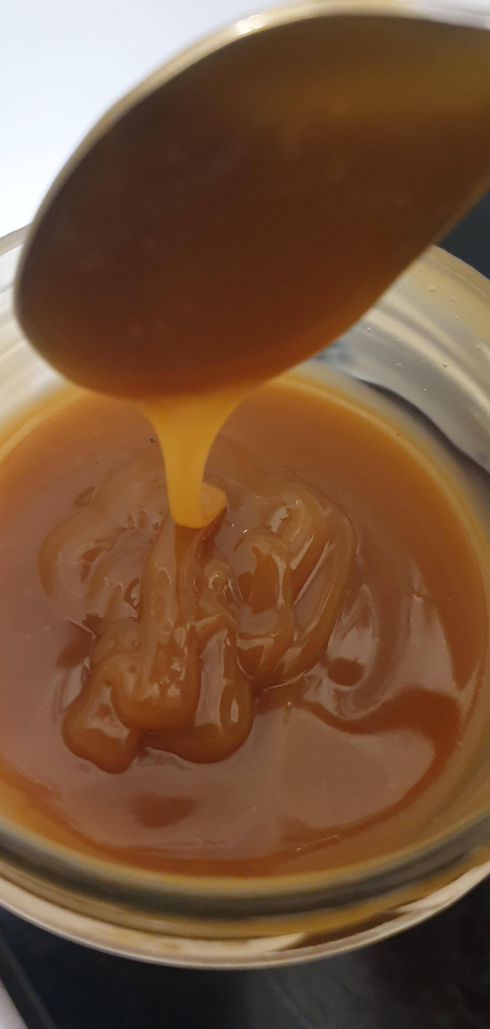 Dans la cuve, mettre le mélangeur, 15cl de crème liquide, 100gr de sucre cassonade, 100gr de miel liquide et 50gr de beurre demi-sel, fermer sans le bouchon