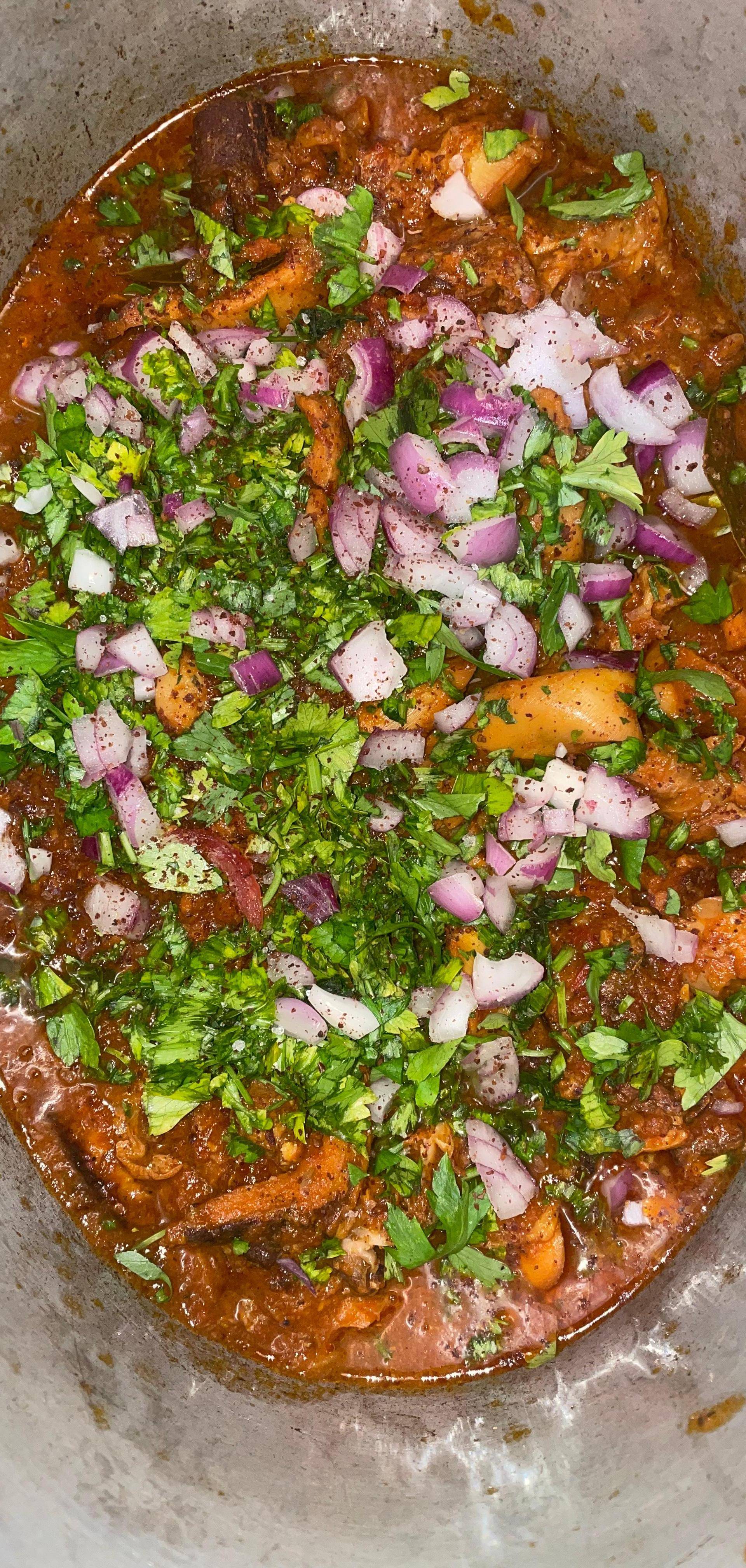 Égoutter le poulpe. Faire revenir un Oignon émincé et y ajouter le poulpe égoutté et le chorizo