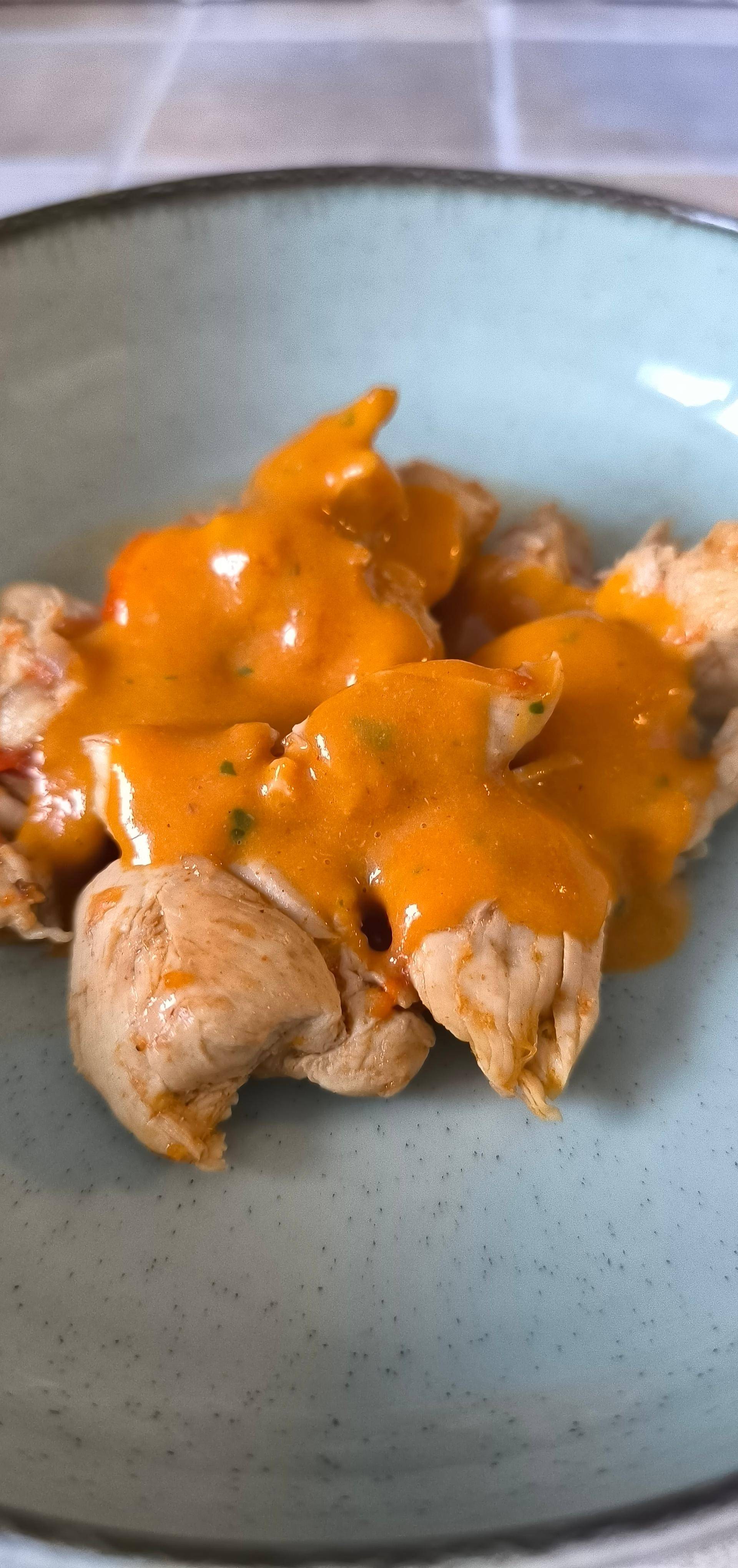 Ajouter un peu de maïzena pour épaissir la sauce. Ajouter le persil. Mixer la sauce. Servir avec du riz ou des pâtes ou encore pour garnir des fajitas.