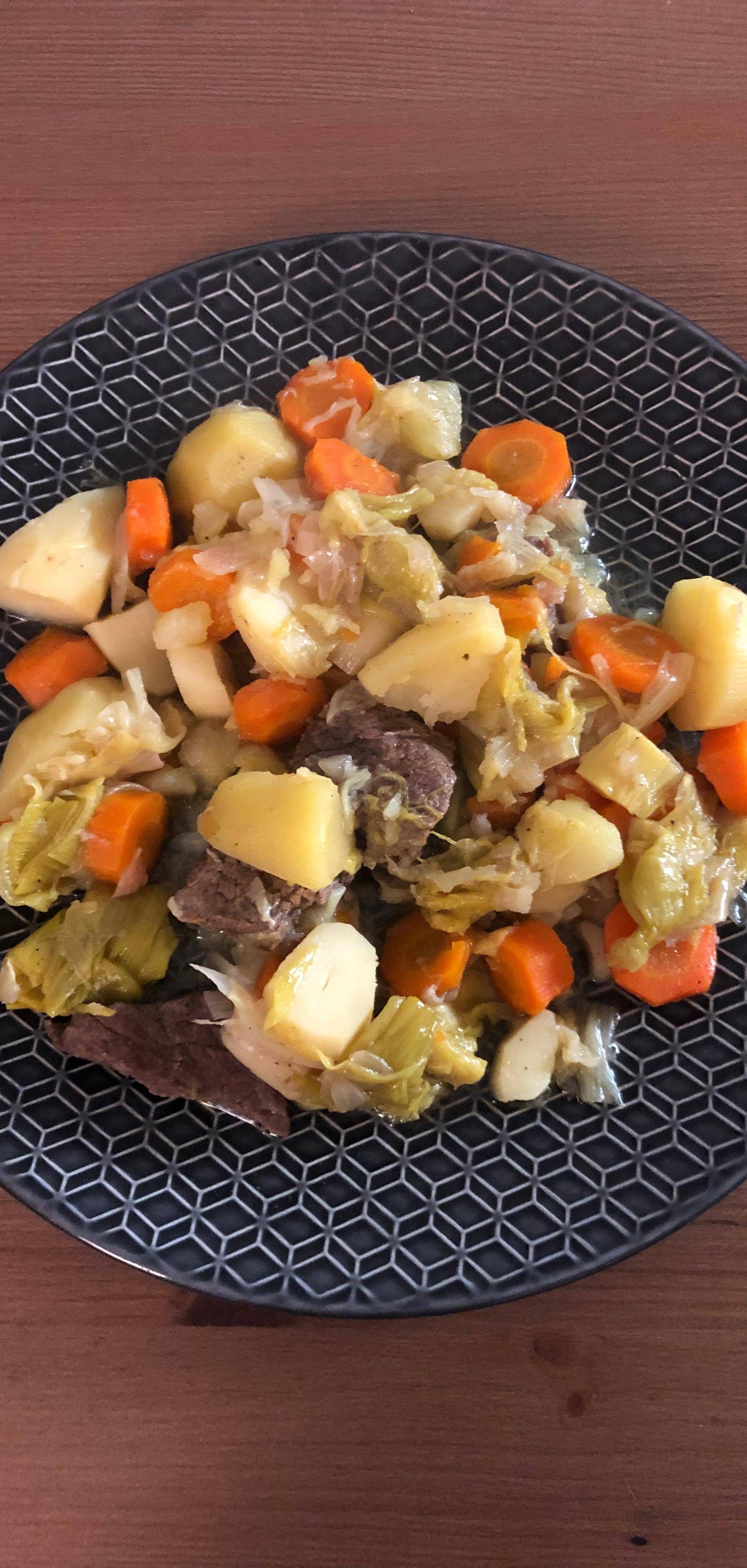 A la fin de la cuisson sous pression, ajouter les légumes pot au feu et les pommes de terre et reprendre la CUISSON SOUS PRESSION 15 mn.
