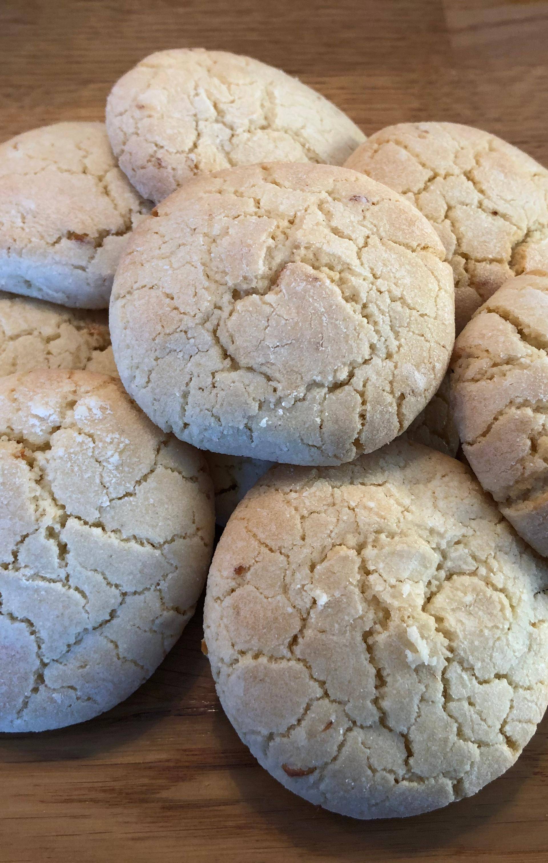 Faire des boules d'environ 20g. Passer chaque boule dans le sucre semoule, puis dans le sucre glace. Poser sur une feuille de papier cuisson, applatir légÚrement et réserver au frais encore 10 minutes.