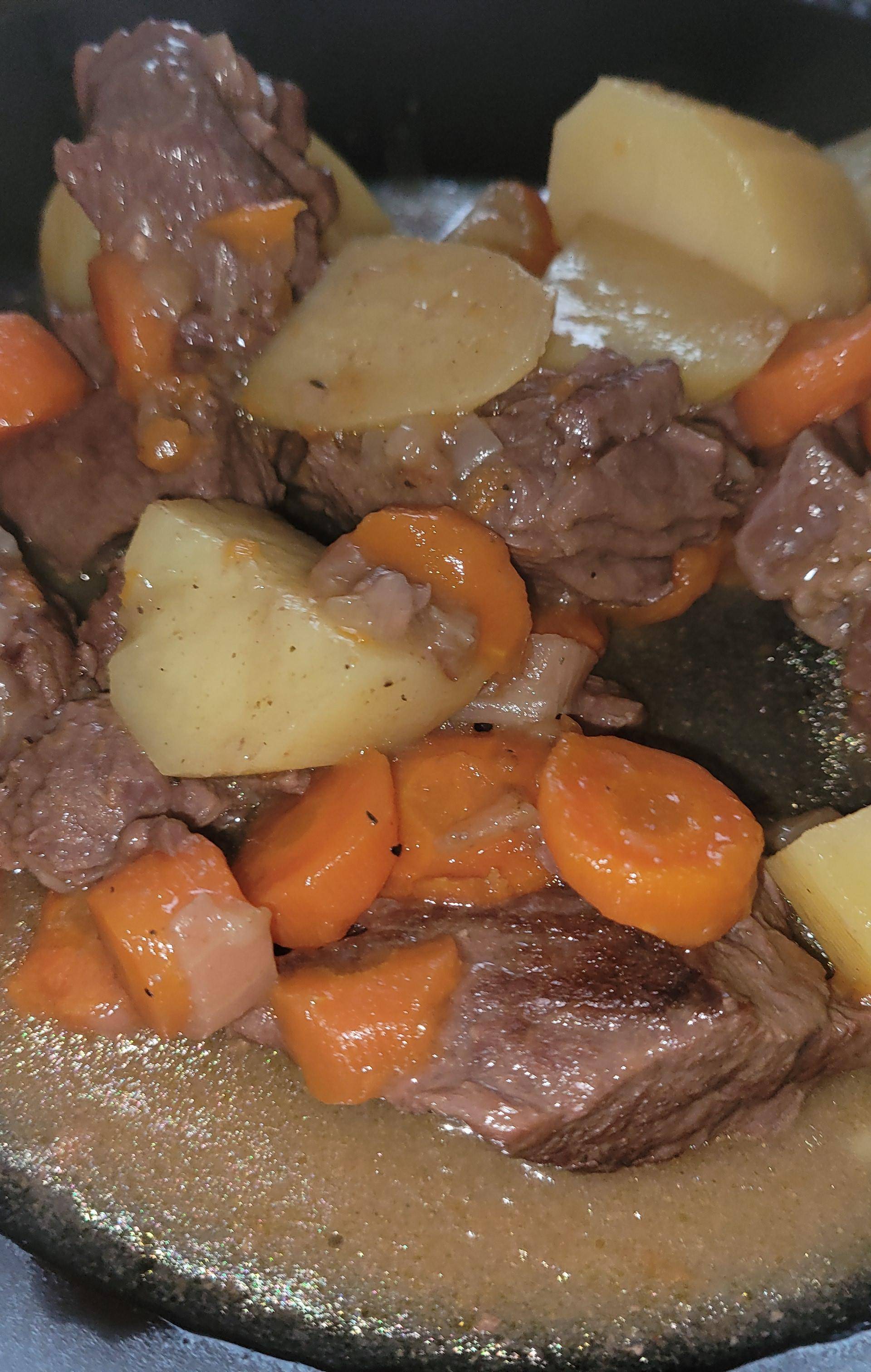 Une fois la cuisson finie, ajouter les pommes de terre et le poivre. Mélanger Remettre en cuisson sous pression pendant 15 minutes Servez c'est prêt Bon appétit