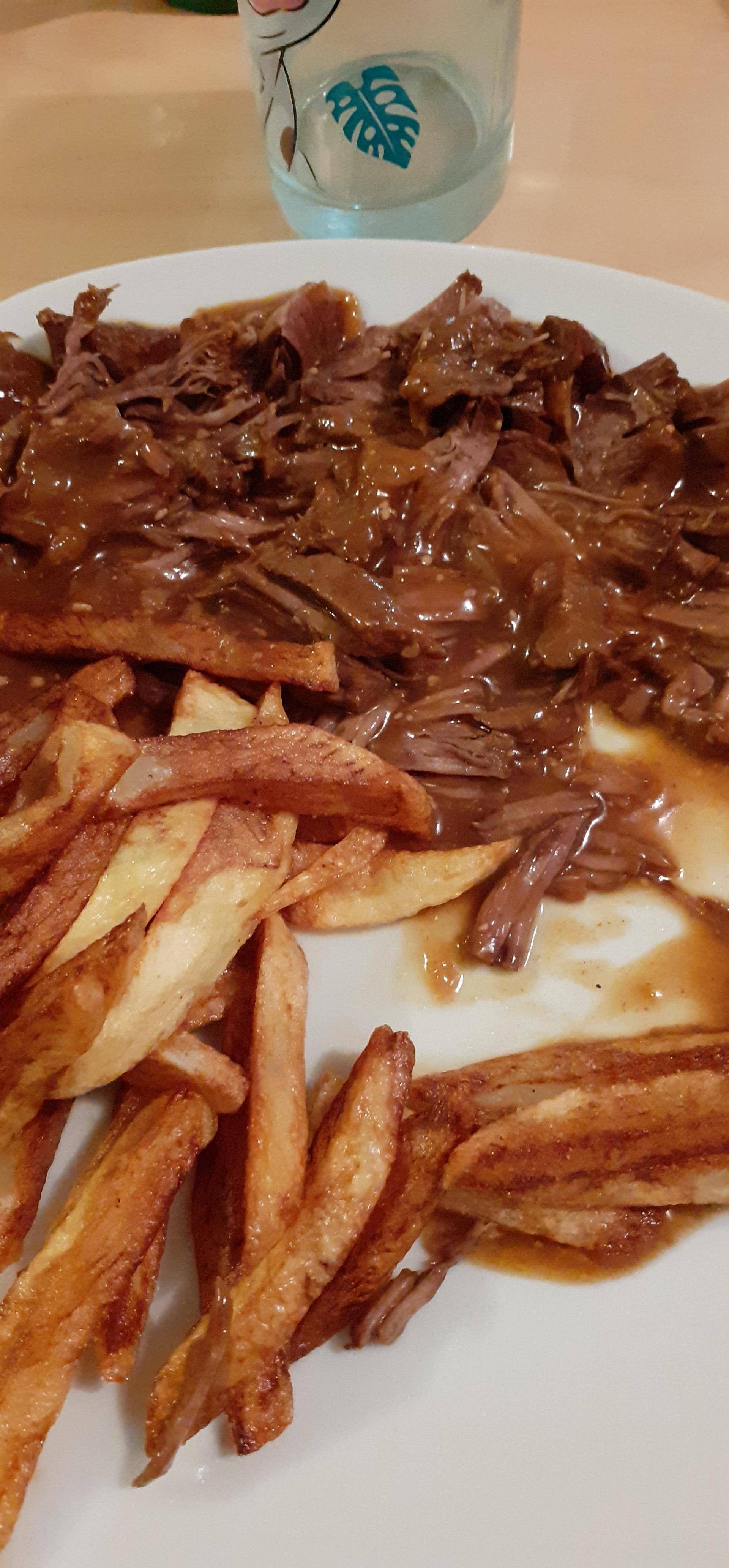 Ajouter l'eau sel et poivre, puis déposer les carrés de pain d'épices sur la viande