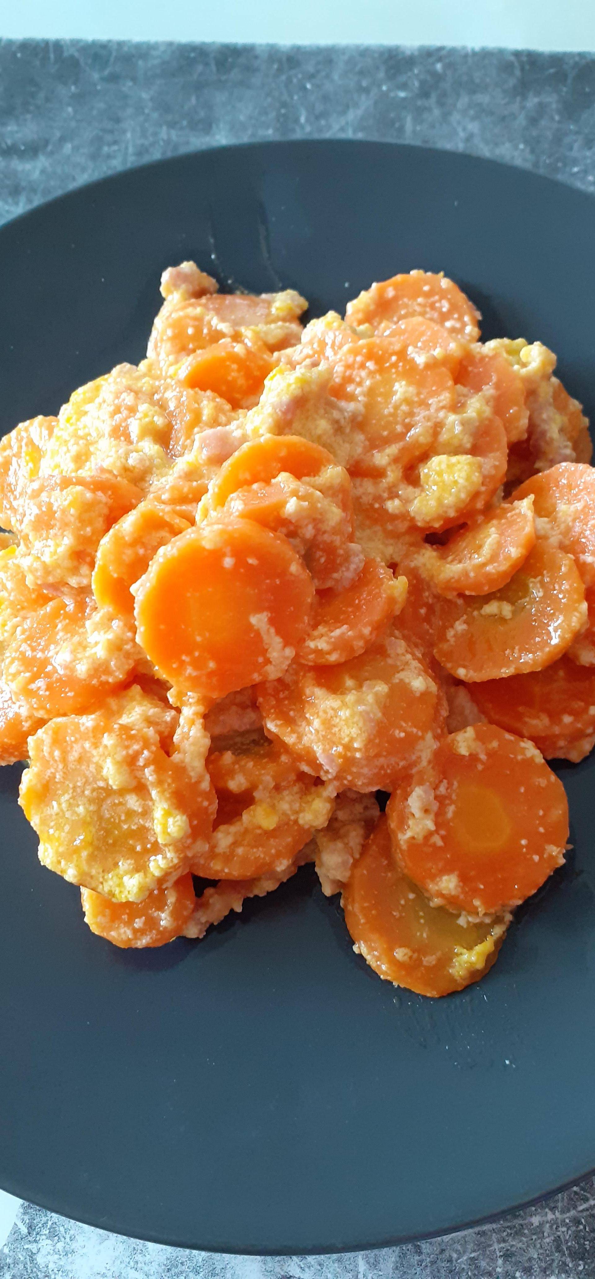 Dans la cuve muni du mélangeur mettre les carottes couper en rondelles ainsi que les lardons et l'huile d'olive