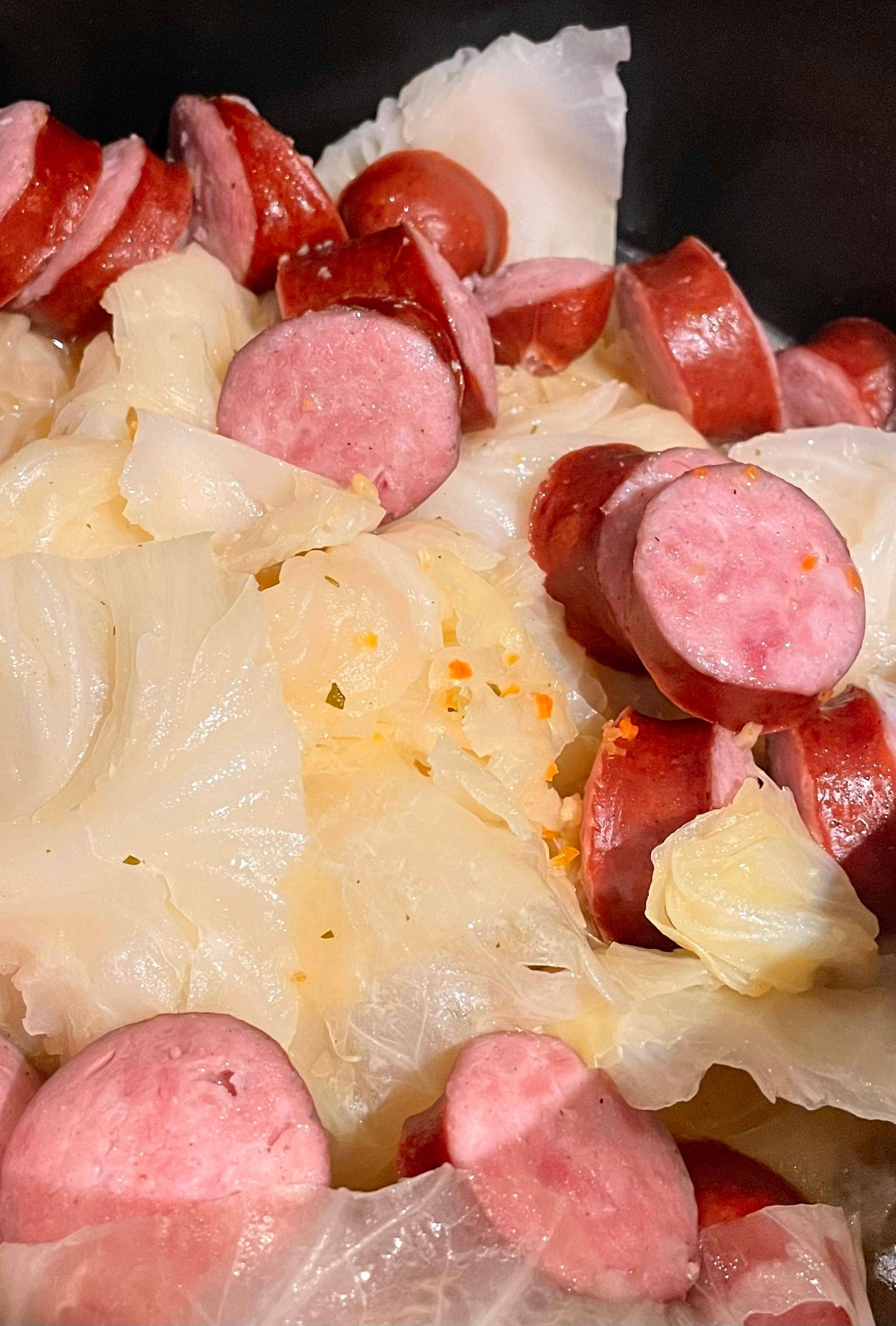 Choux au lard fumé et saucisses fumées