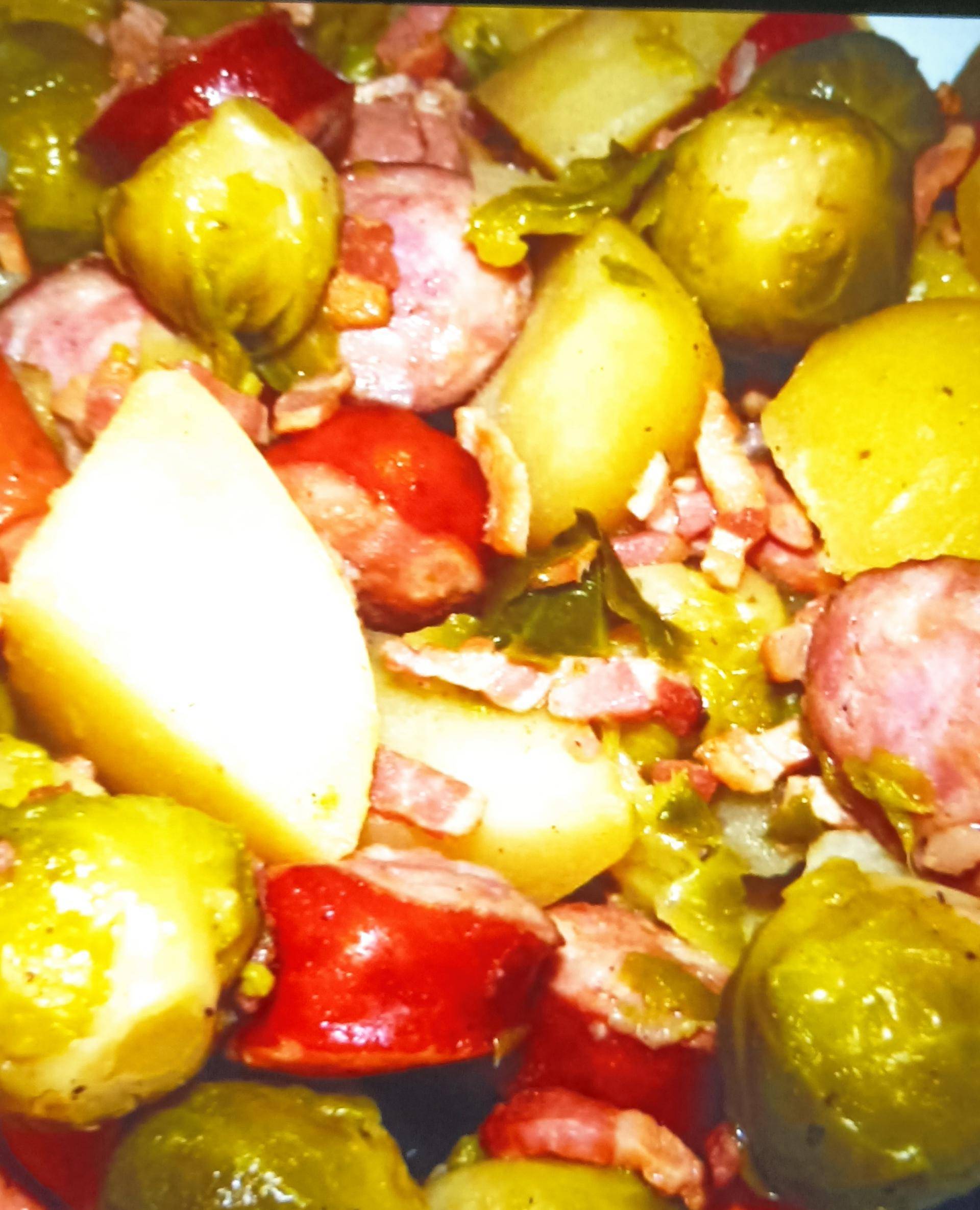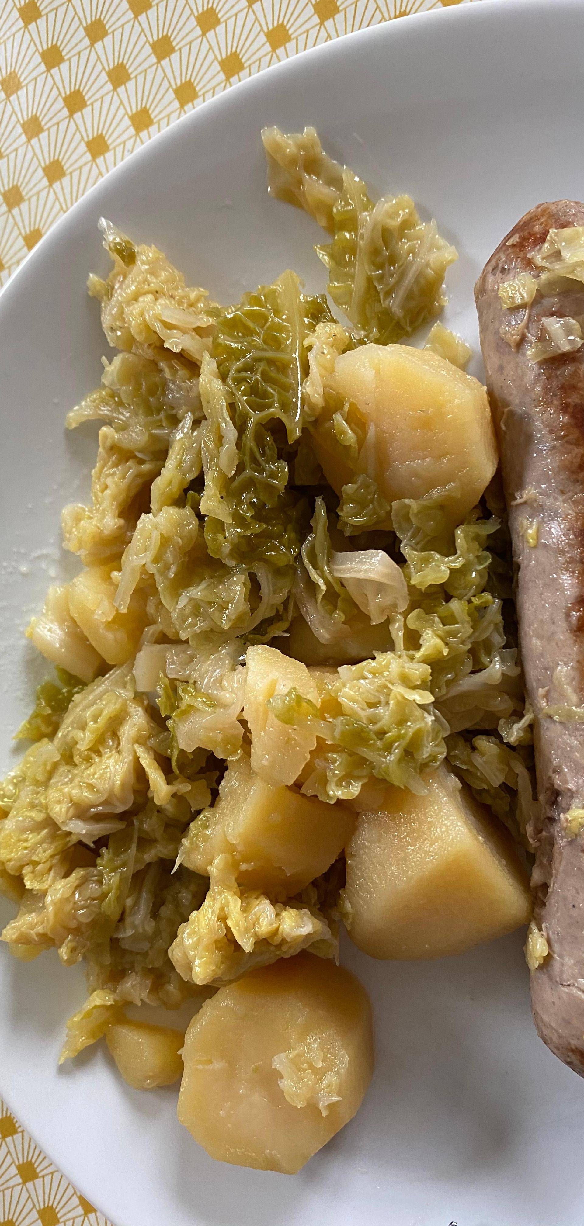 Choux de Bruxelles, saucisses et pomme de terre