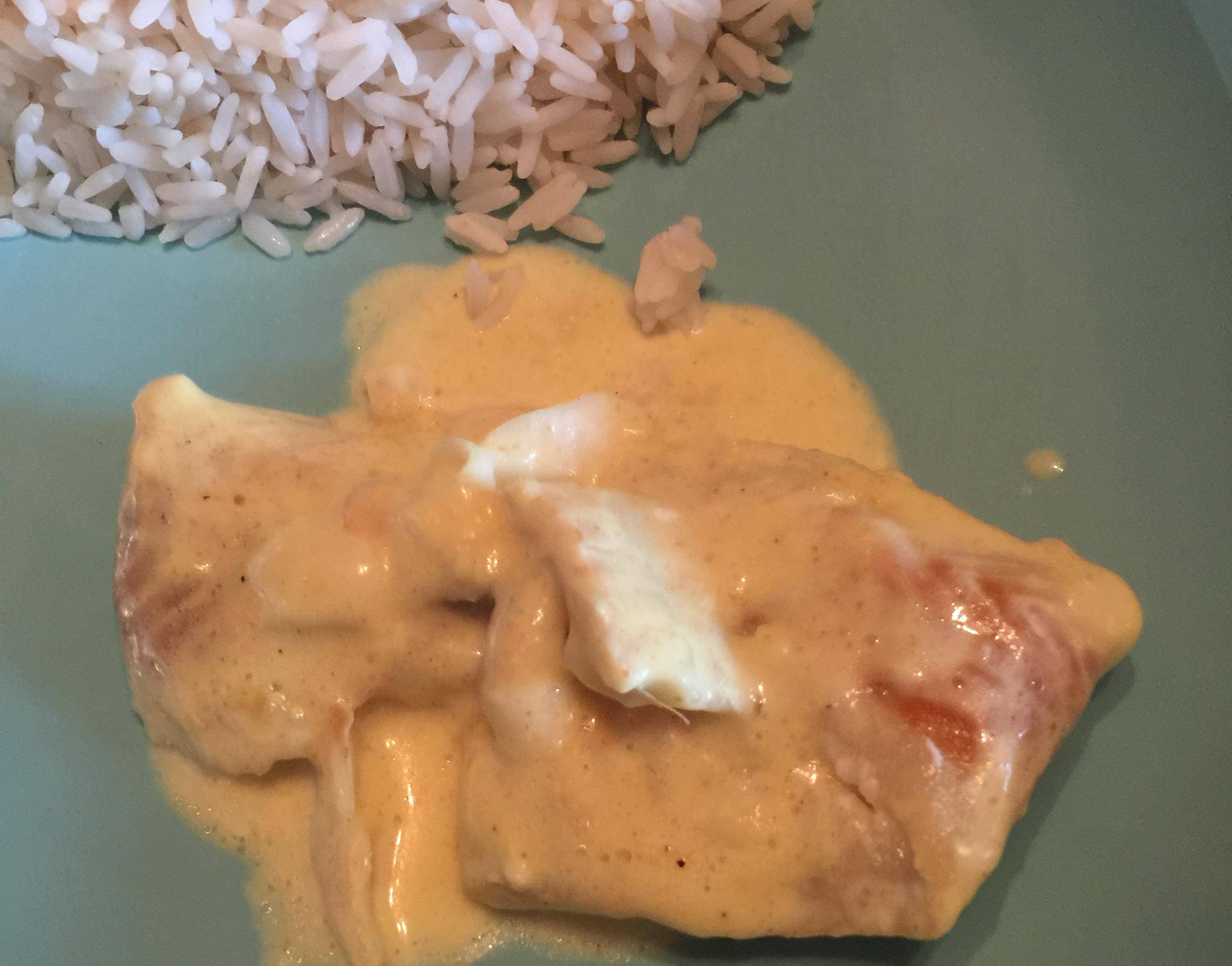 Retirer les filets dans une assiette et ajouter dans la cuve la crème liquide et le curry puis mélanger