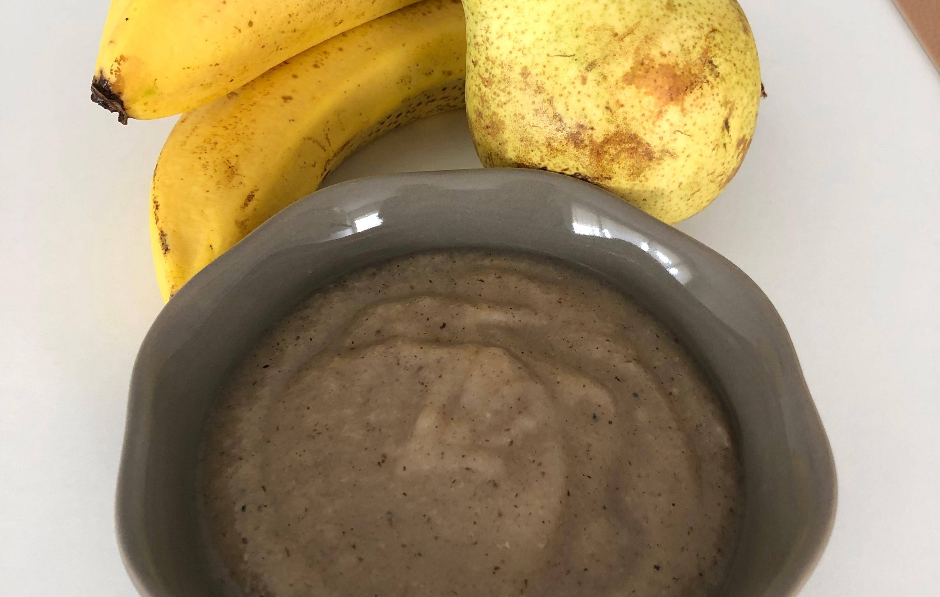 Épluchez les poires, ôtez les pépins et coupez-l’es en morceaux. Coupez les bananes en rondelles. Mettez poires et bananes dans le robot muni du couteau hachoir « Ultrablade ». Ajoutez la cassonade, l’eau et la vanille. Verrouillez le couvercle avec le bouchon et appuyer sur « Start ».