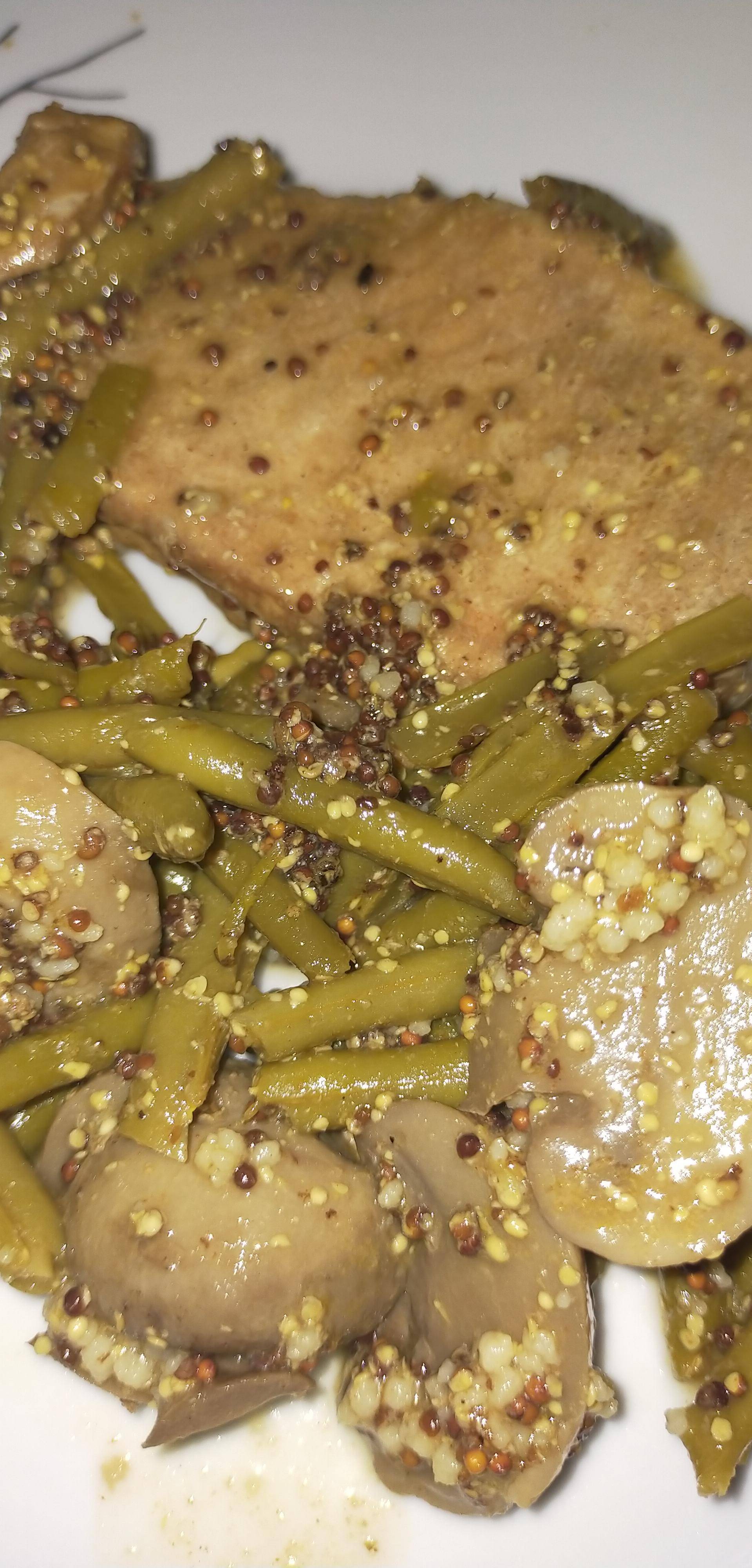 Badigeonner les côtes de porc avec la moutarde, saupoudrer de paprika. (Vous pouvez mélanger avec de la moutarde ancienne). Détaillé les champignons