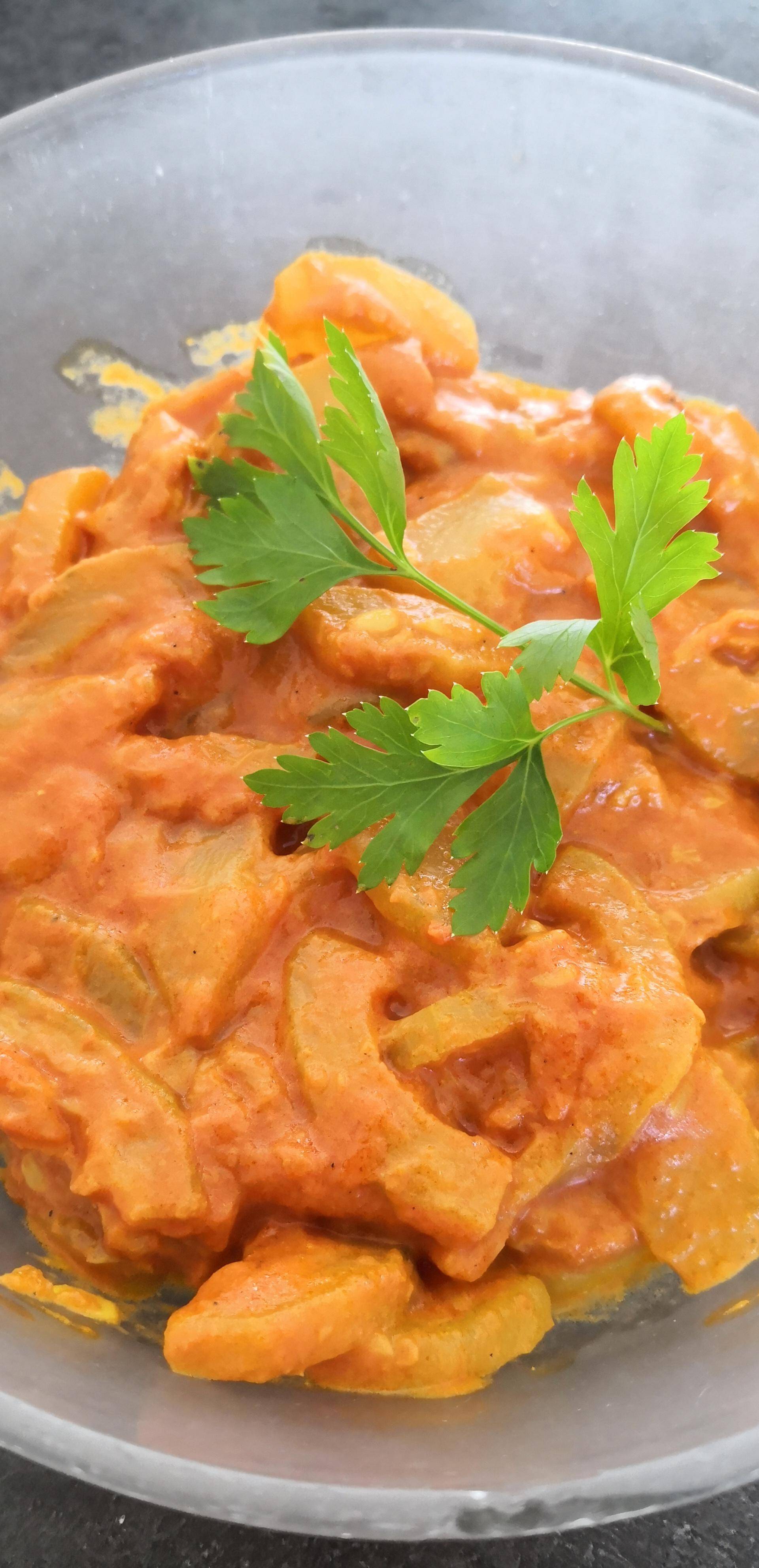 Ajouter le curry et Curcuma, bien mélanger, laisser cuire encore 1 minute.