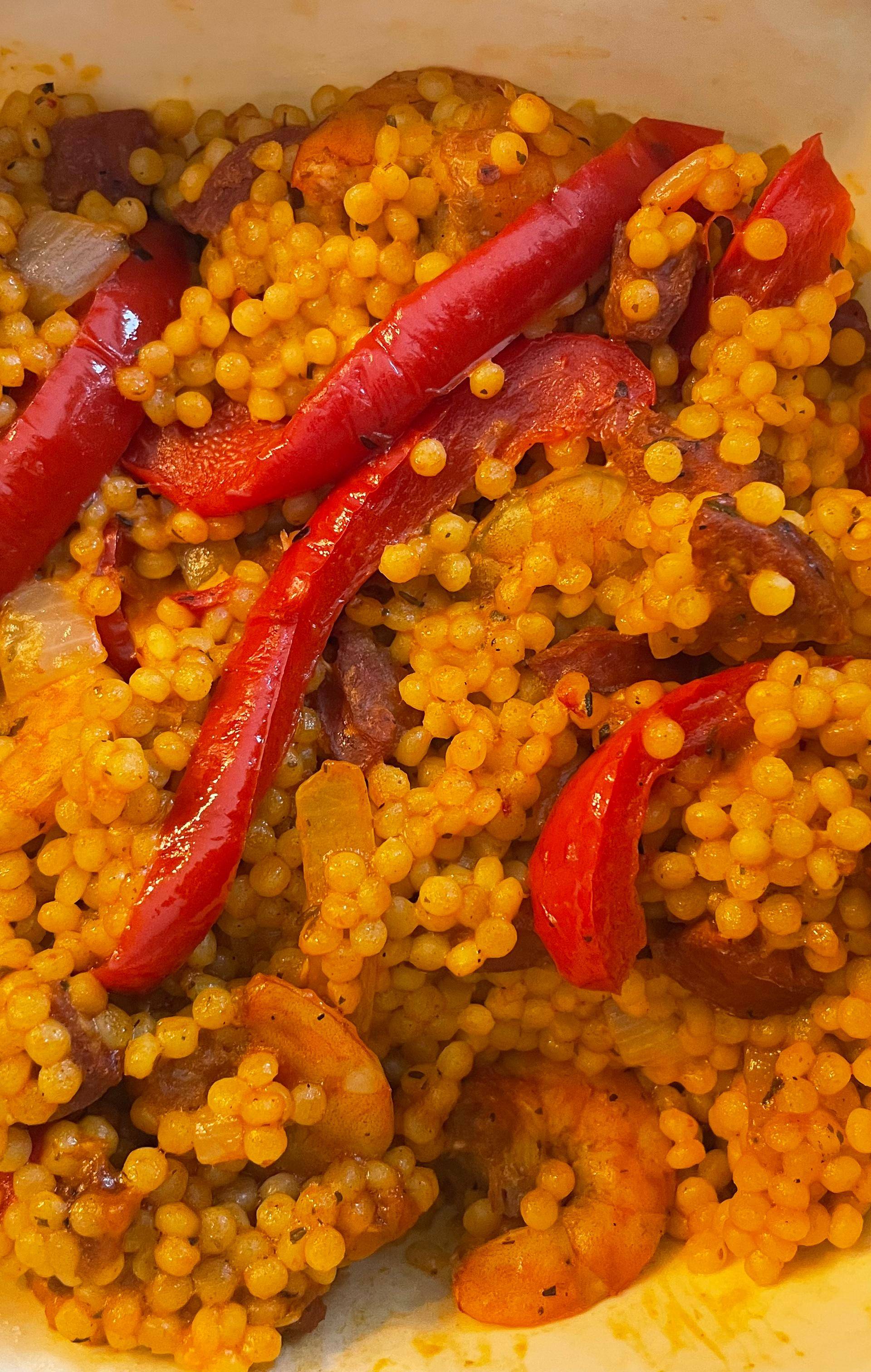 Couscous perlé, crevettes et chorizo