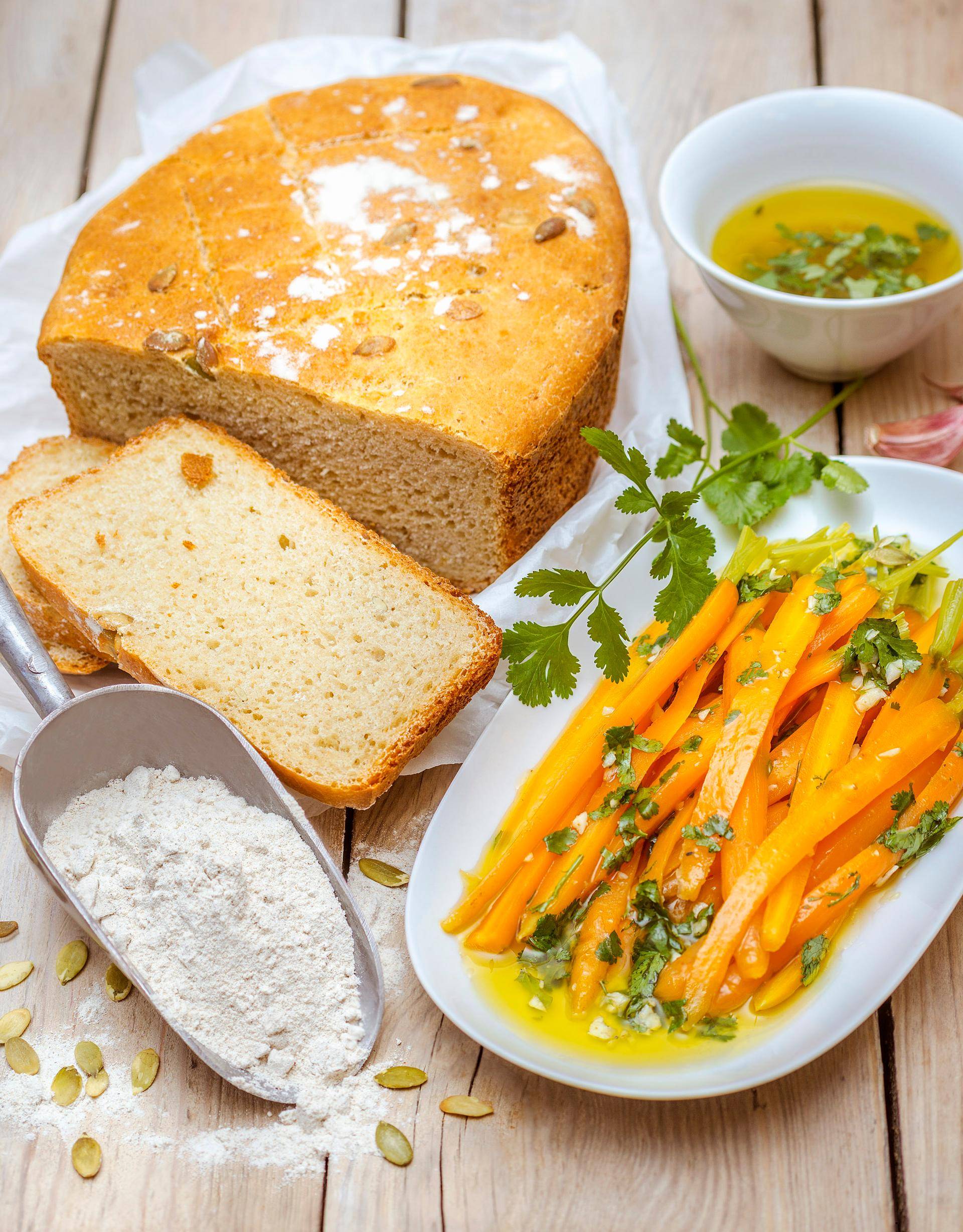 Pain cocotte aux graines de courges et minis carottes relevées