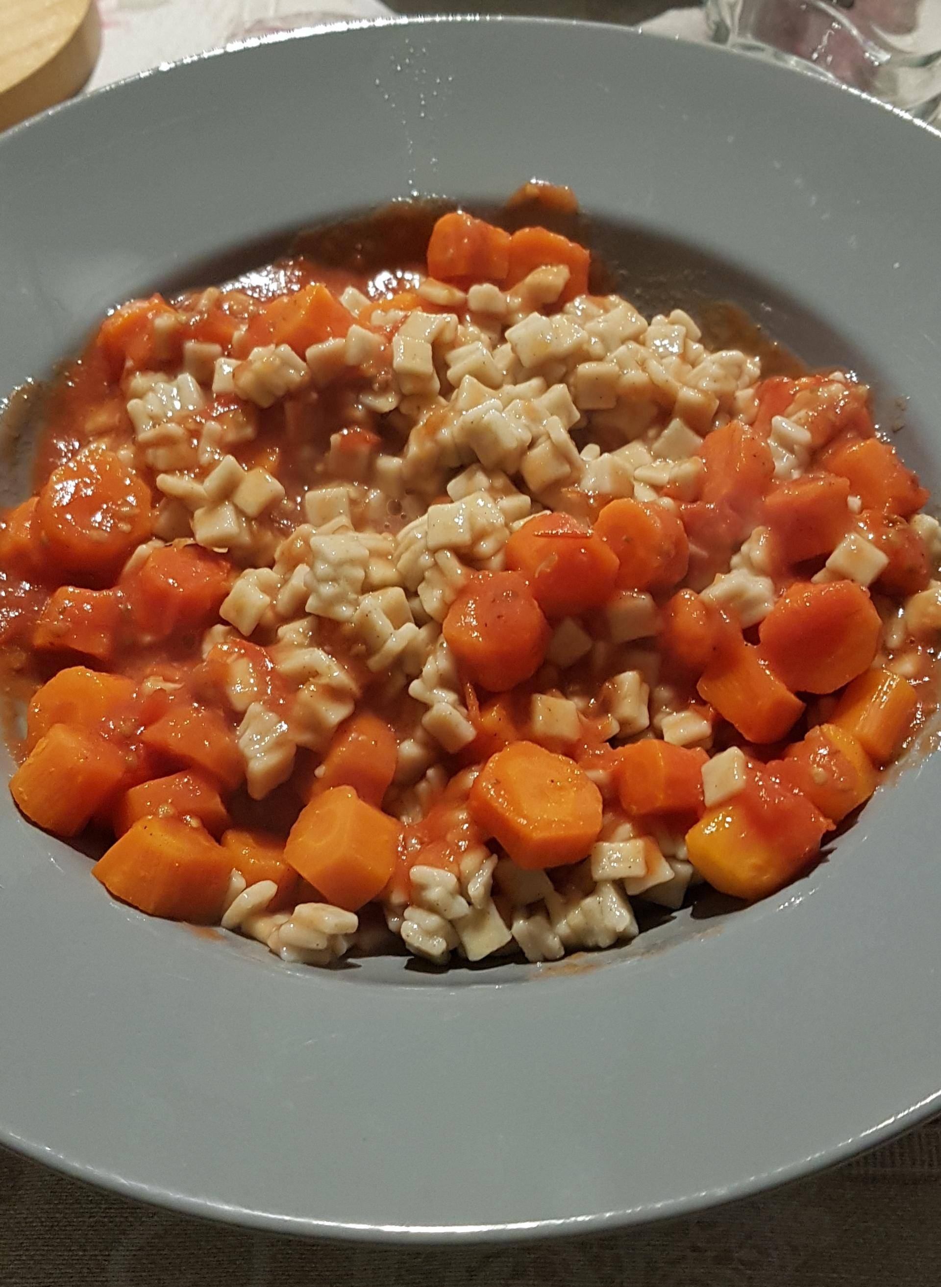 Crozets au sarrasin à la sauce tomate et aux carottes