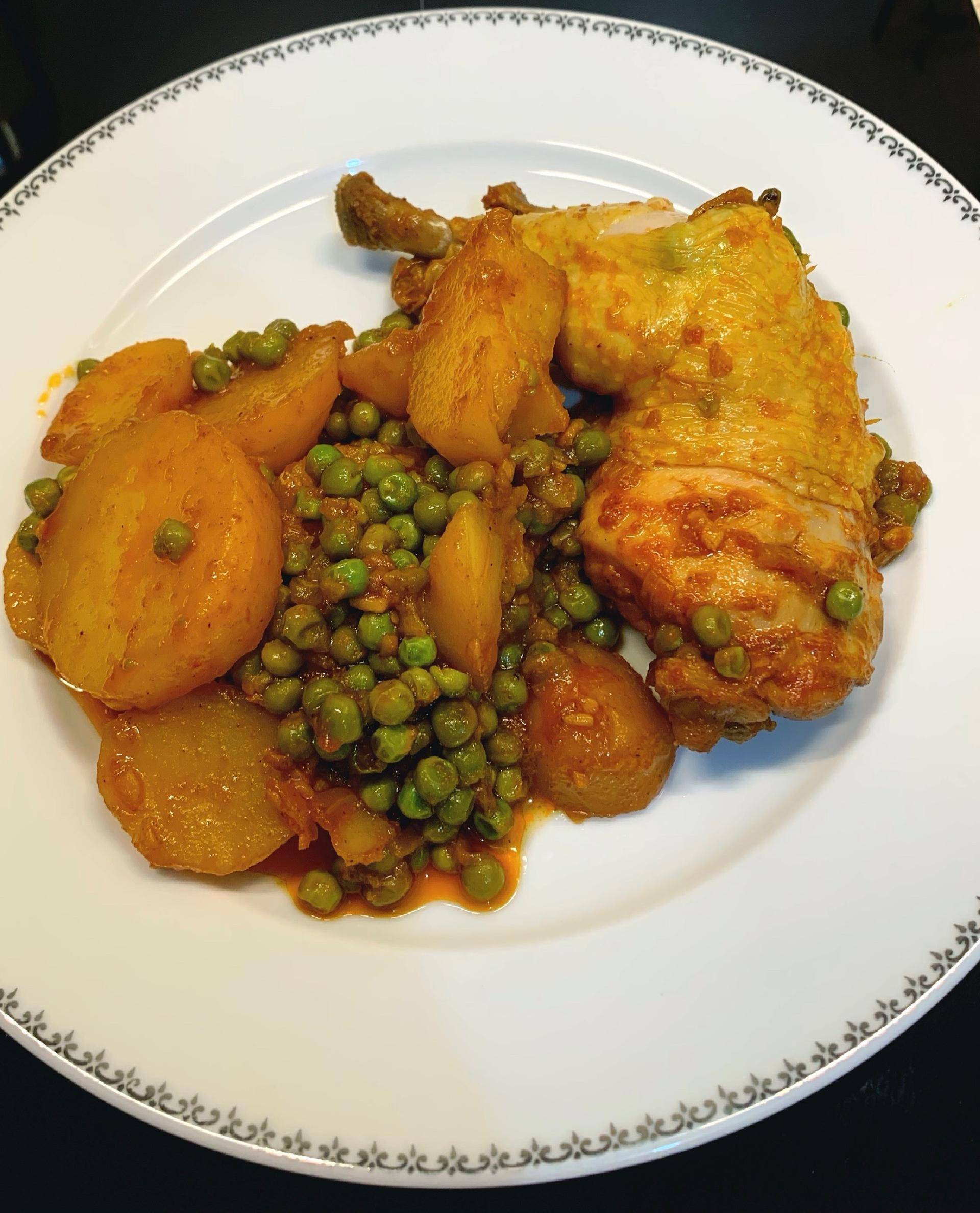 Aiguillettes de poulet au curry - petits pois et pommes de terre