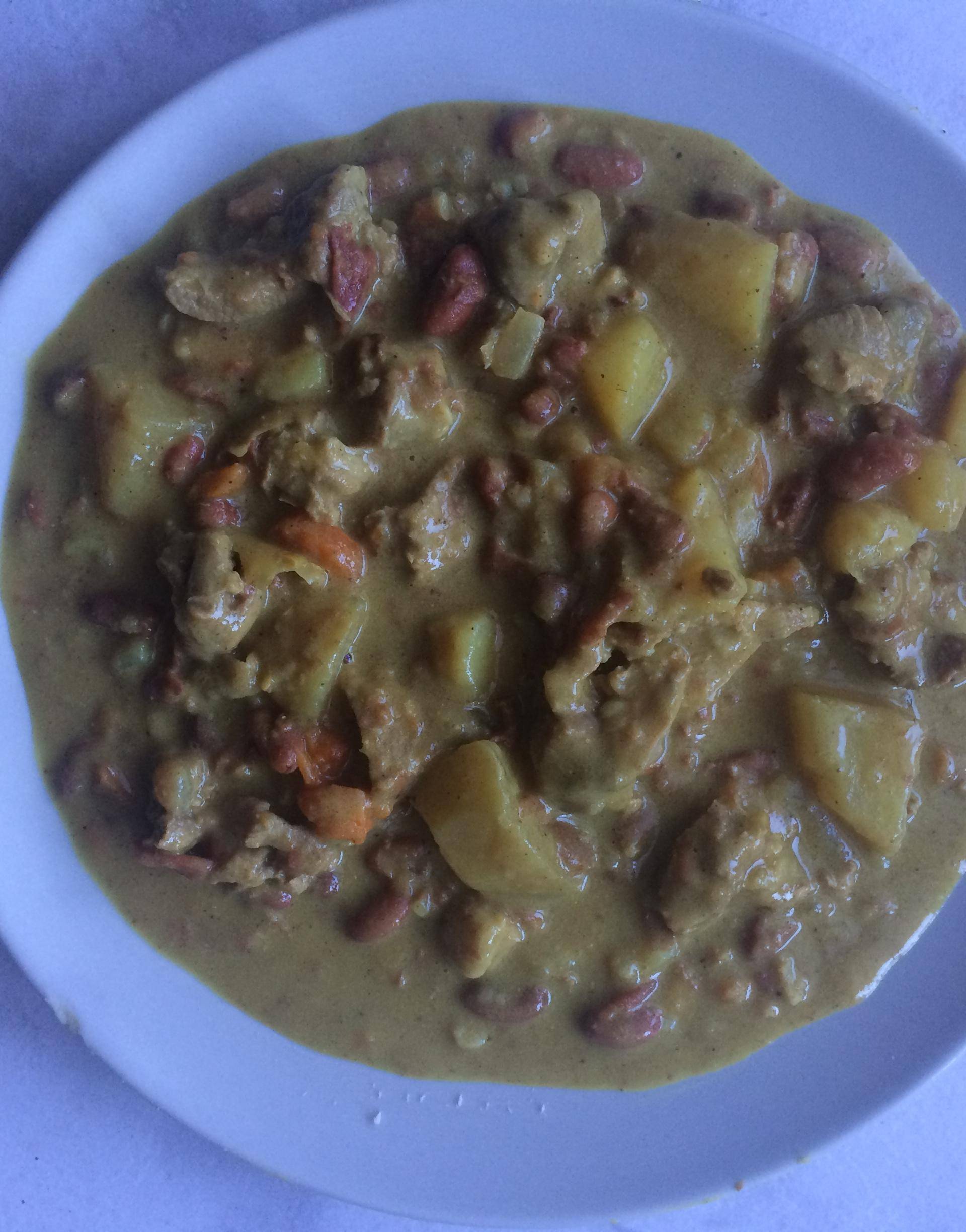 Ajouter les carottes en rondelles, les pommes de terre, les haricots,crème liquide , le lait de coco Et les épices