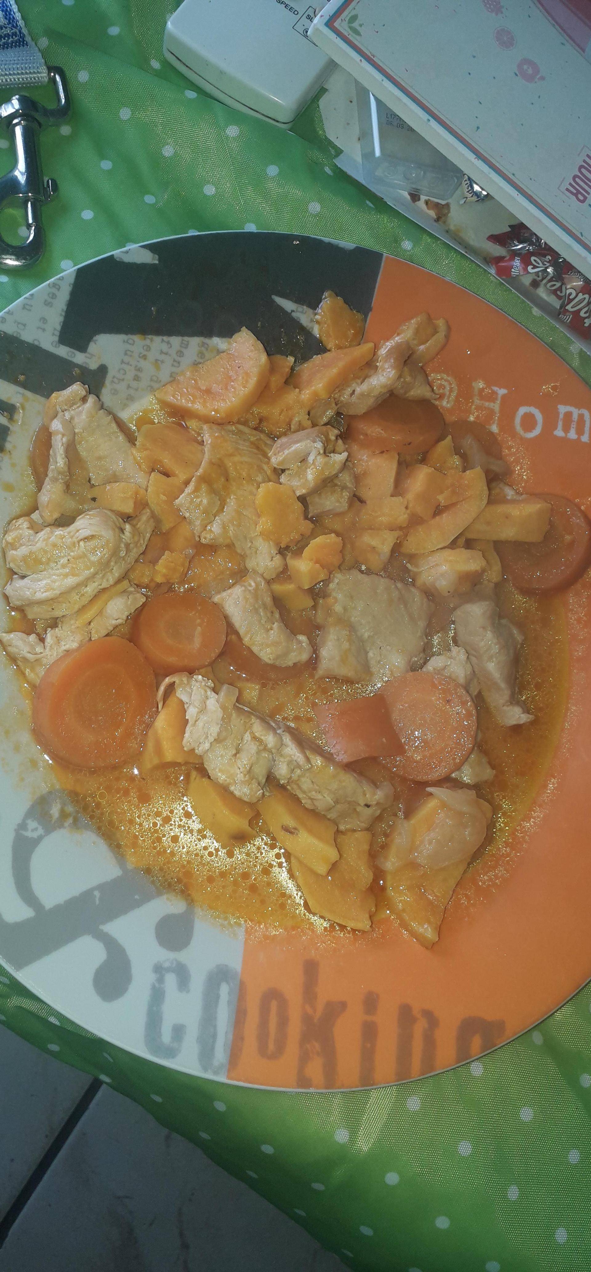 Dinde coco poivrons carottes patate douce