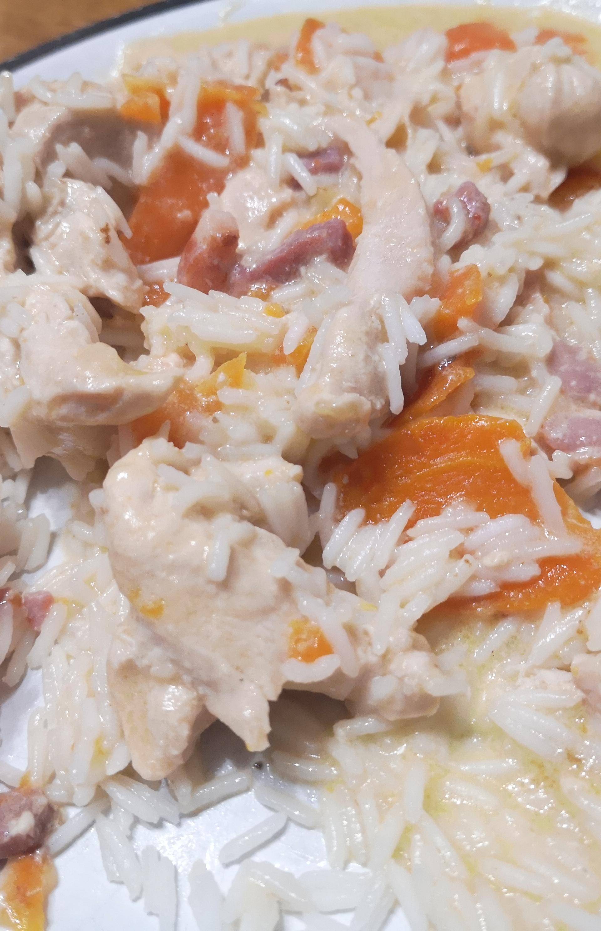 Allumer le cookeo en cuisson classique position doré. Mettre la matière grasse et faite doré les échalotte, les carottes, les lardons et les lamelles de dinde pendant 5 min. Verser ensuite la farine puis laisser cuire 2 min.