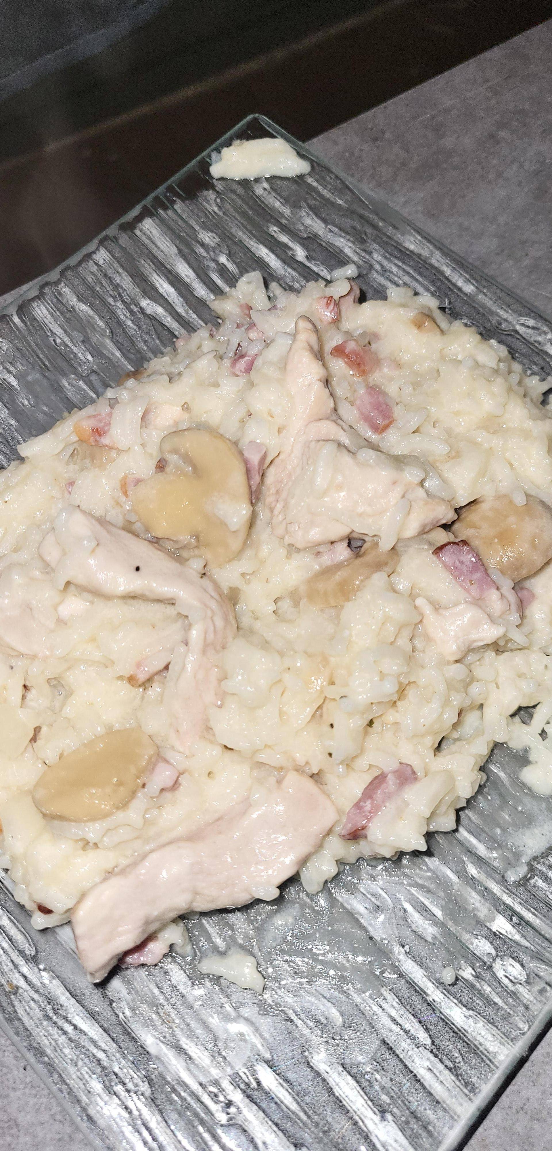 Rajouter Les champignons L'eau Le cube or Le riz La crème