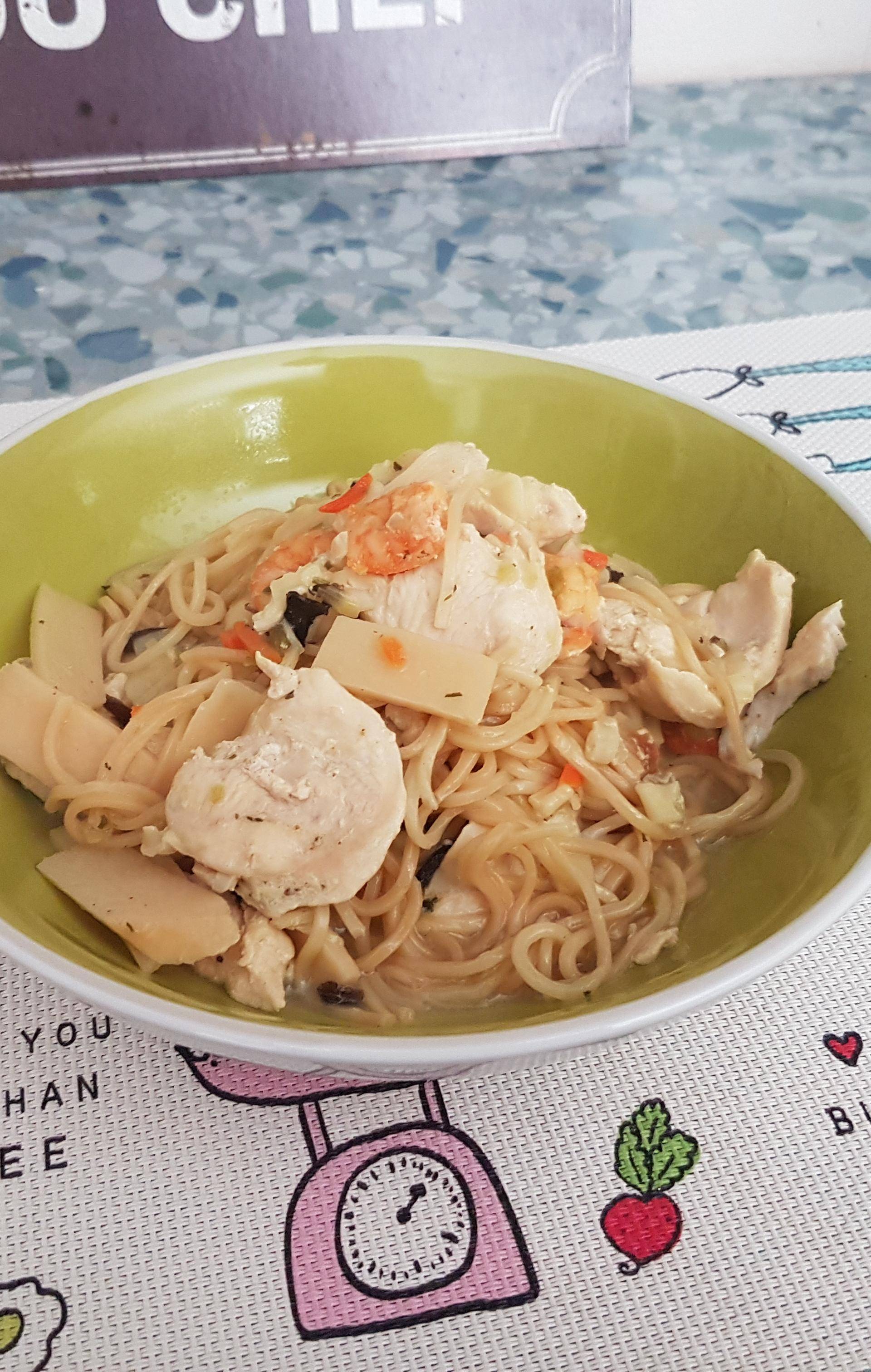 Couper le poulet en morceaux Faire des petits dés de Chorizo et des carottes