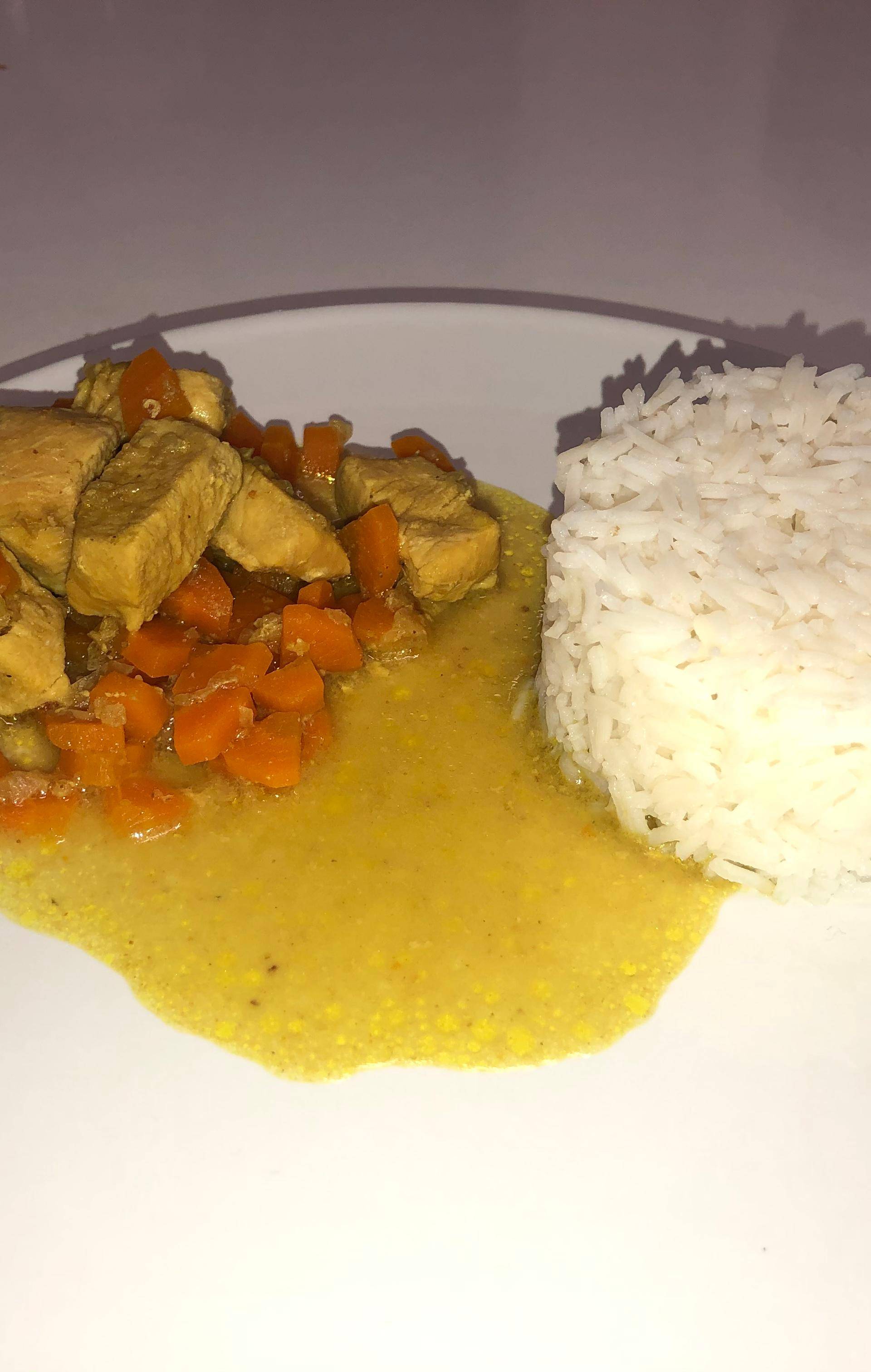 Couper les escalopes en cube de taille moyenne ensuite émincé les oignons et couper les carottes en deux et ensuite en petit morceaux