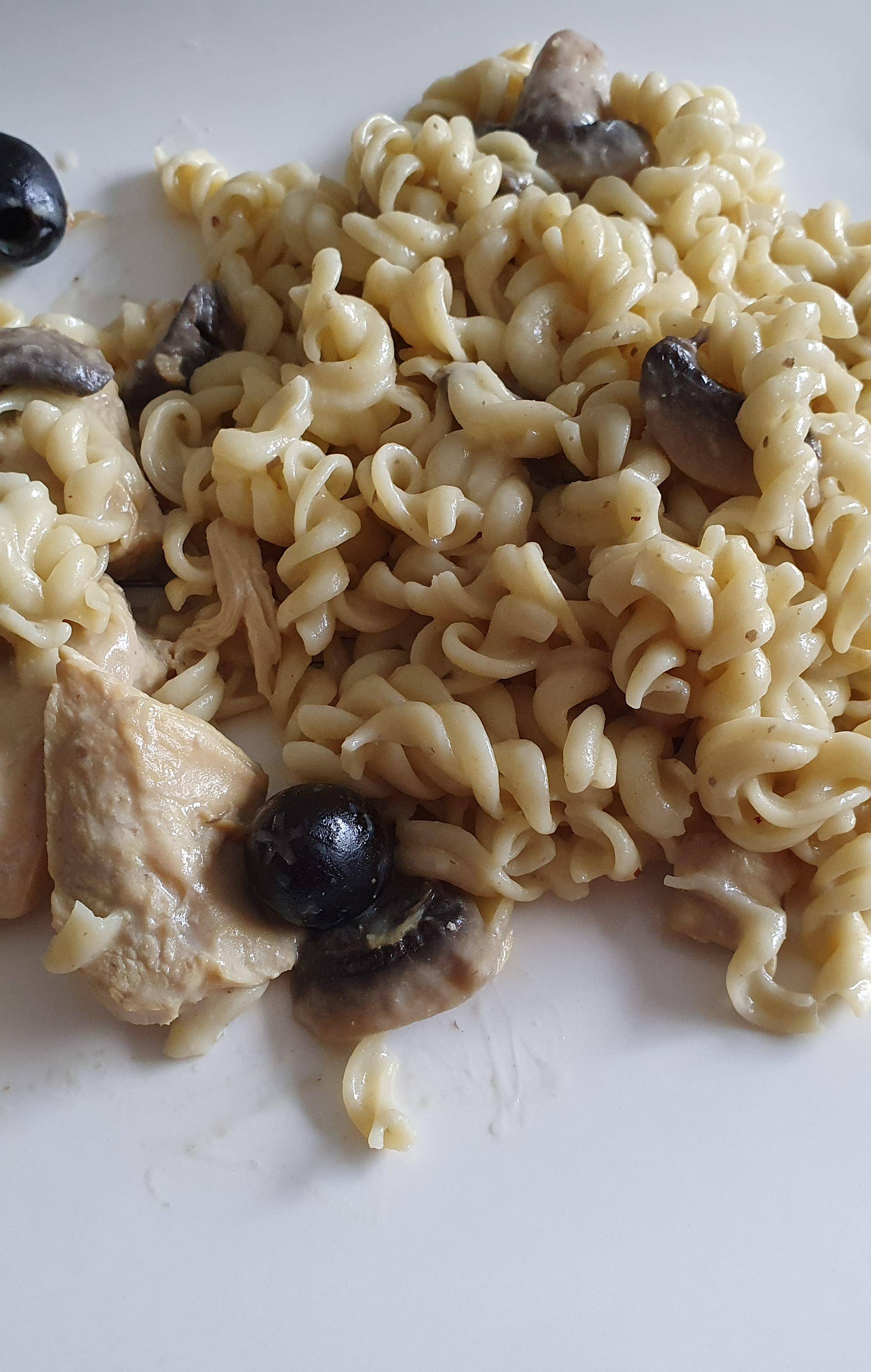 Une fois le tout revenu, ajouter le cube de volaille et 100 ml d'eau ainsi que les olives noires lancer en cuisson sous pression pour 12 min