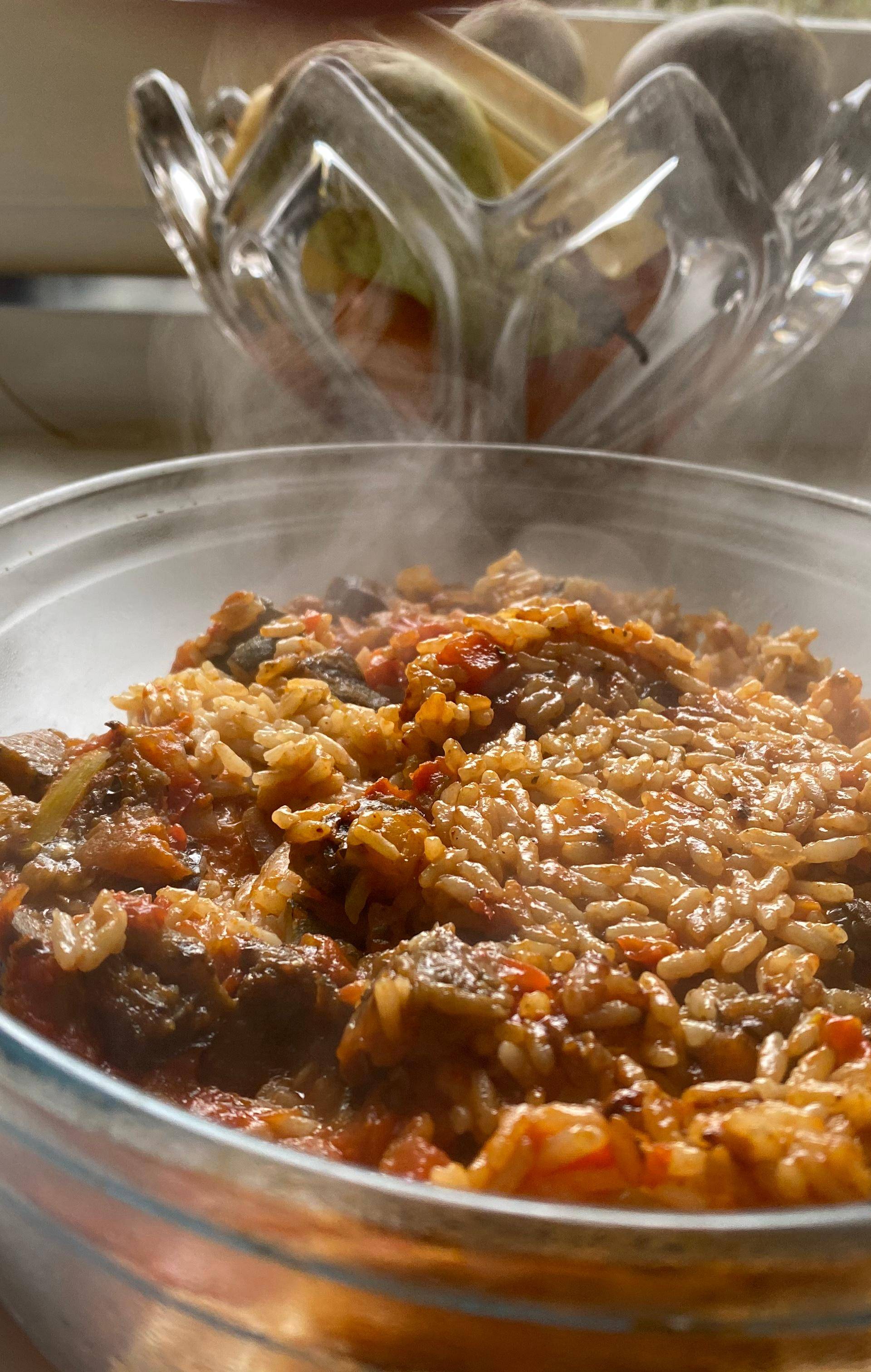 Déposer le riz au fond de la cuve Rajouter la ratatouille décongelée Couvrir d’eau (juste au dessus du riz)