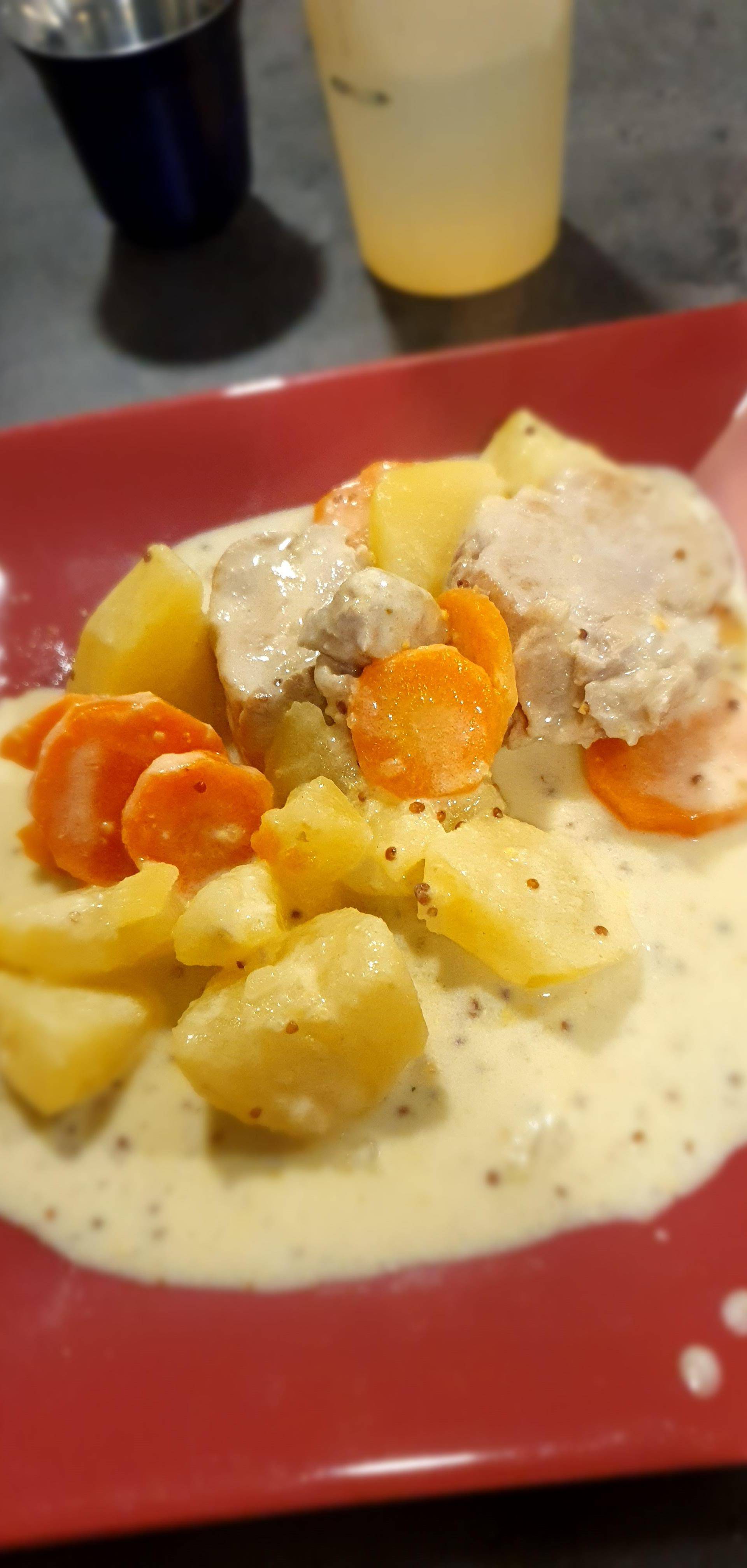 Une fois la cuisson finie, mélanger dans un bol la crème fraîche et les deux moutardes. Délayer la maïzena avec un peu de bouillon. Ajouter tout dans le Cookéo et bien mélanger. Pour que la sauce épaississe doucement, mettre sur mode "mijoter" et laisser chauffer tranquillement pendant 10-15 minutes. Une fois la cuisson finie, mélanger dans un bol la crème fraîche et les deux moutardes. Délayer la maïzena avec un peu de bouillon. Ajouter tout dans le Cookéo et bien mélanger. Pour que la sauce épaississe doucement, mettre sur mode "mijoter" et laisser chauffer tranquillement pendant 10-15 minutes.