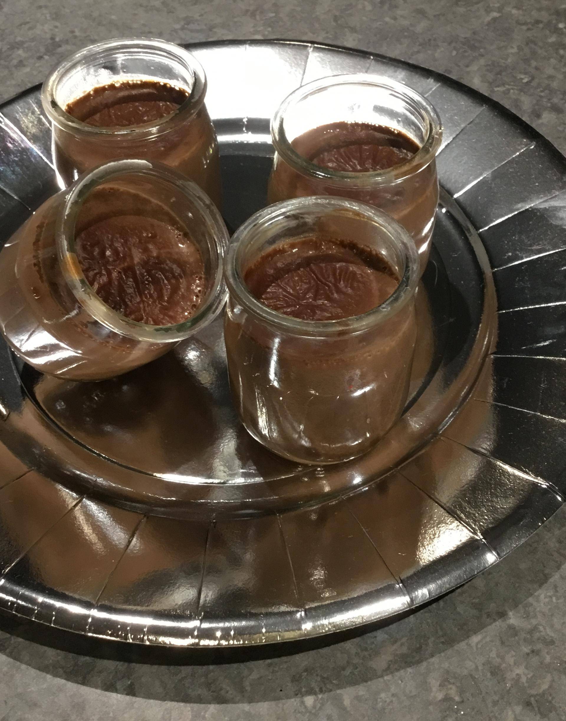Verser la préparation dans vos petits pots en verre (je réutilise ceux des yaourts type La Laitière), à l’aide d’un entonnoir. Les laisser refroidir pendant environ 2 heures à température ambiante. Puis filmer et mettre au réfrigérateur pendant 8 heures. L’idéal étant de les préparer la veille pour le lendemain.