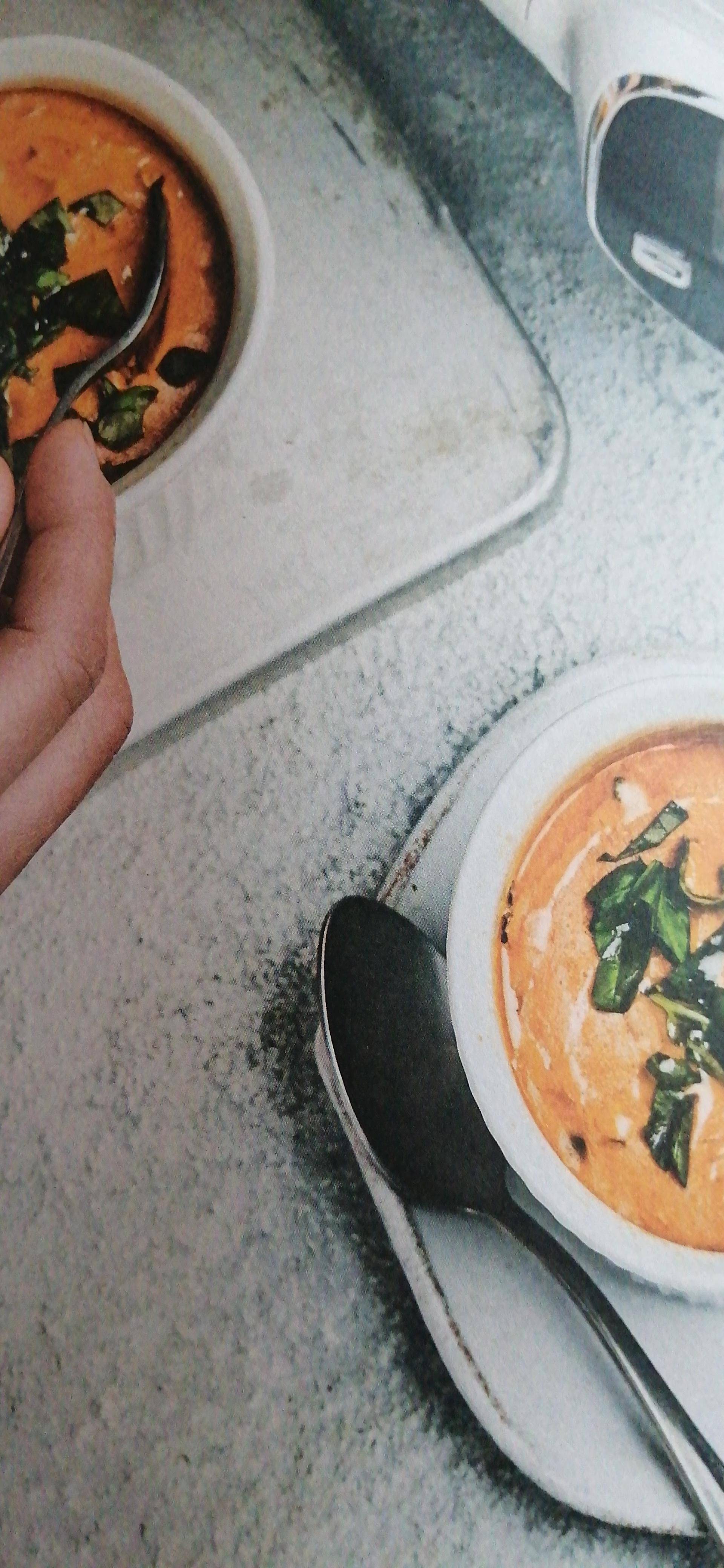 Mettre l'huile dans a cuve. Faire revenir pendant 5 mn en mode rissolage fort les tomates, le pain et les oignons ainsi que les herbes aromatiques.