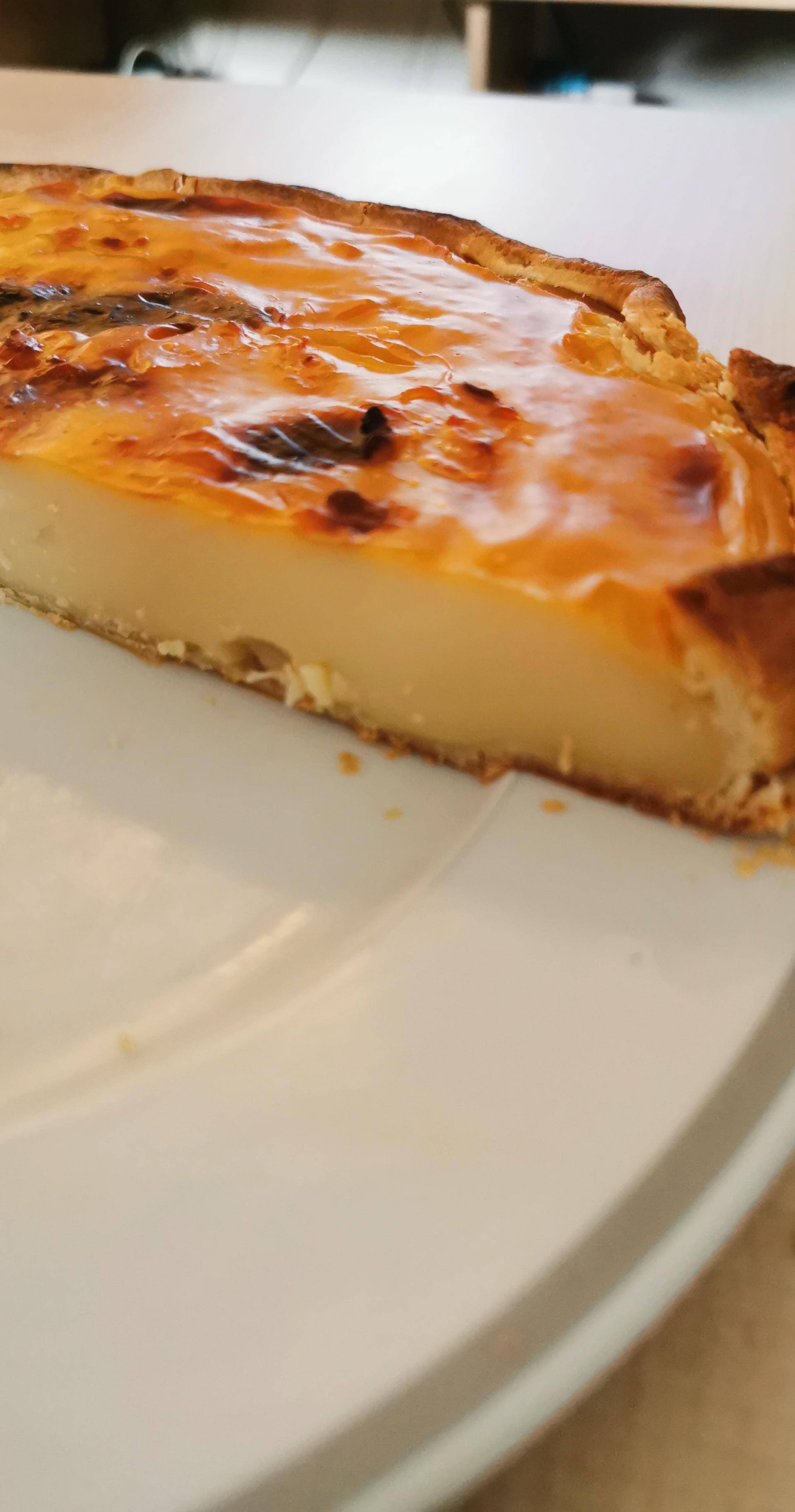 Placer la crème dans la pâte sablée préalablement déroulée dans un plat. Attendre que la crème refroidisse un peu. Puis mettre le flan au four 40 minutes à 180°.